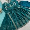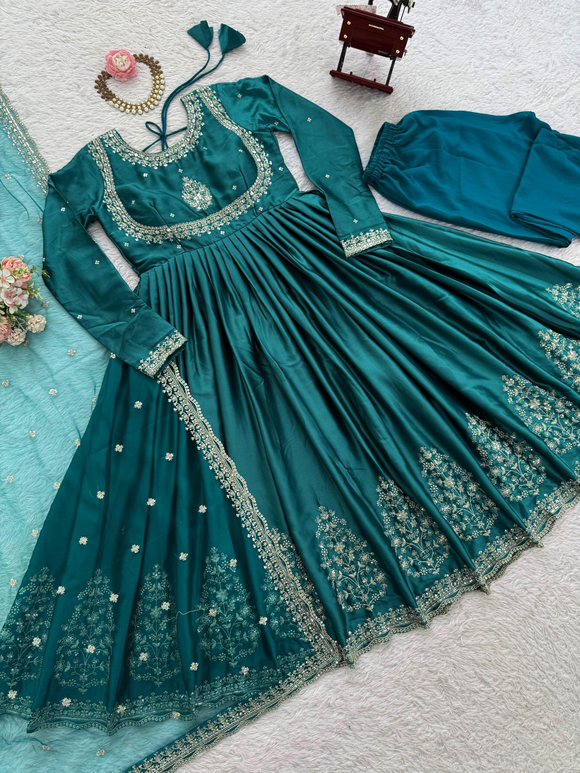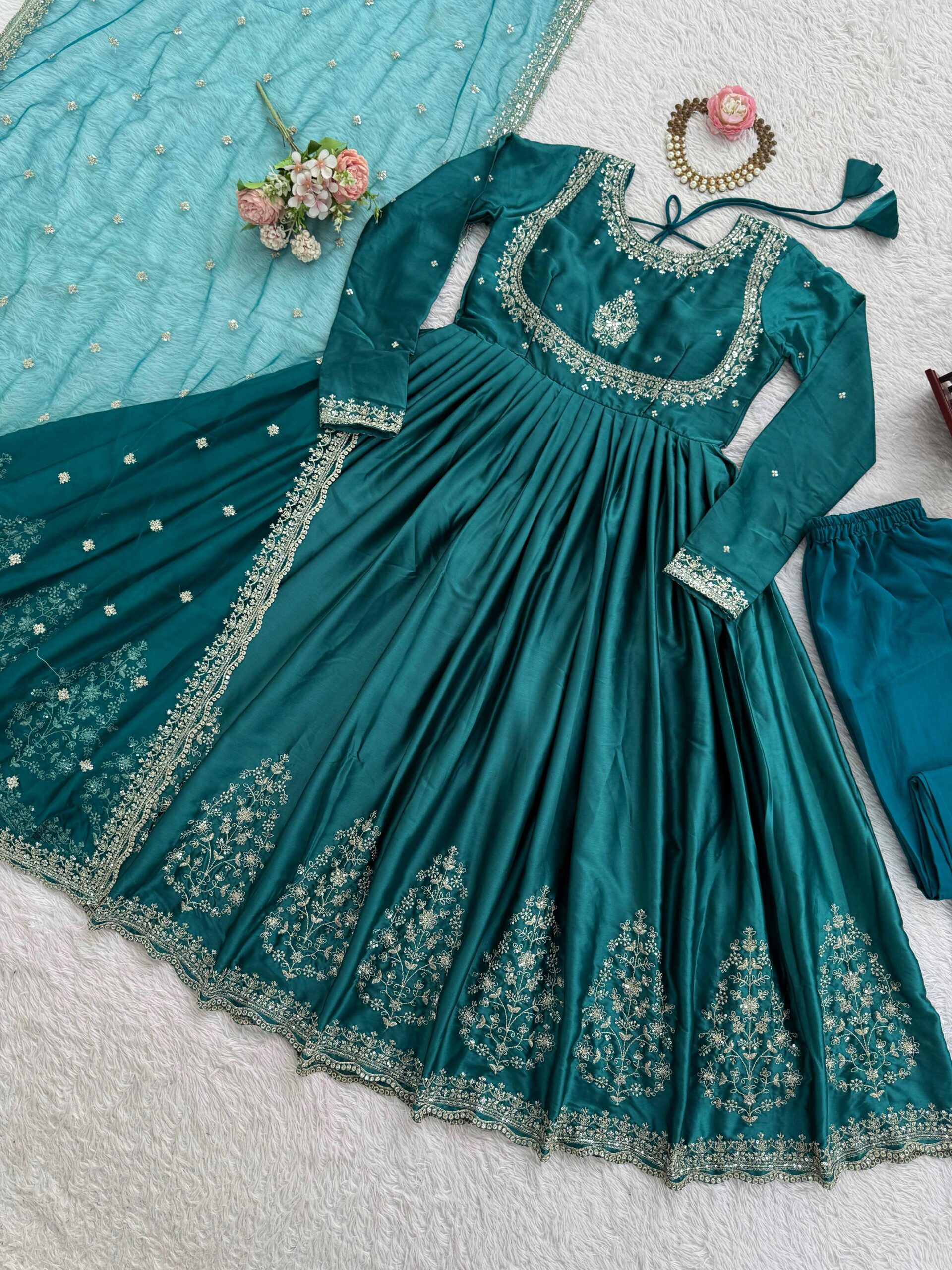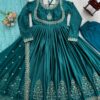 5932 Readymade Japan Satin Thread Embroidery Work Anarkali Catalog.
