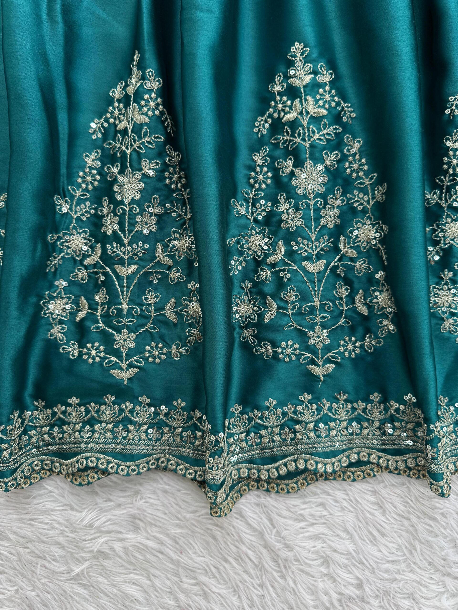 Work: Thread with Sequin Work & 4-Side Lace Border