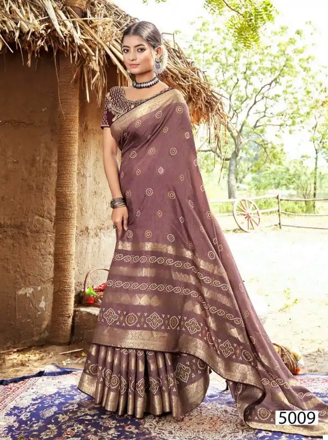 Enhance your ethnic wardrobe with this set of 6 elegant Pure Silk Jari Pattern sarees. Each saree is a masterpiece of craftsmanship, featuring intricate Jari patterns and embroidery work. These sarees are perfect for special occasions and celebrations, adding a touch of luxury to your attire.