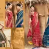 The sarees are adorned with exquisite Jari patterns, which add a touch of traditional charm and opulence to the attire.