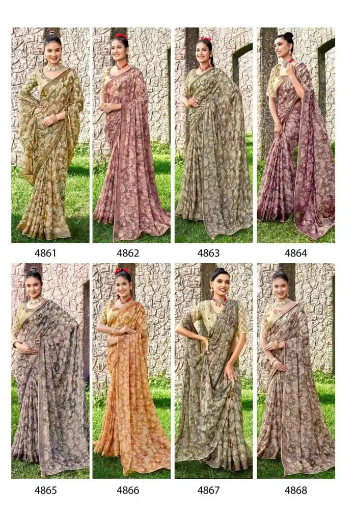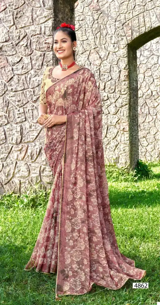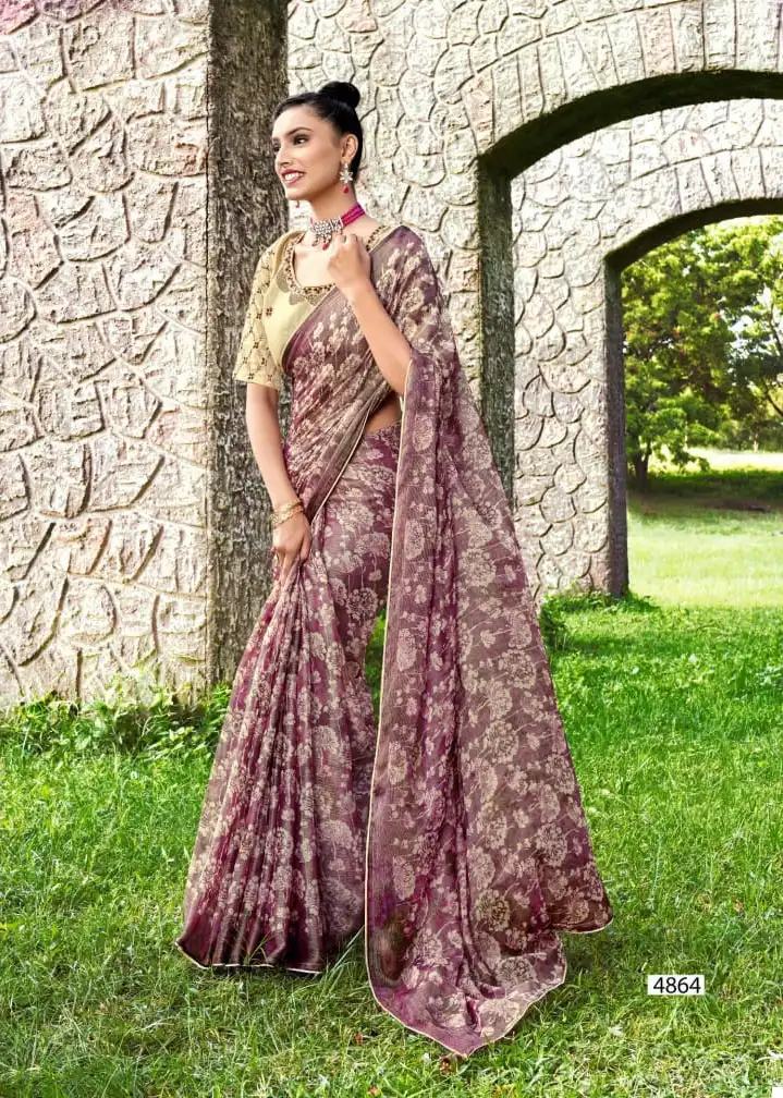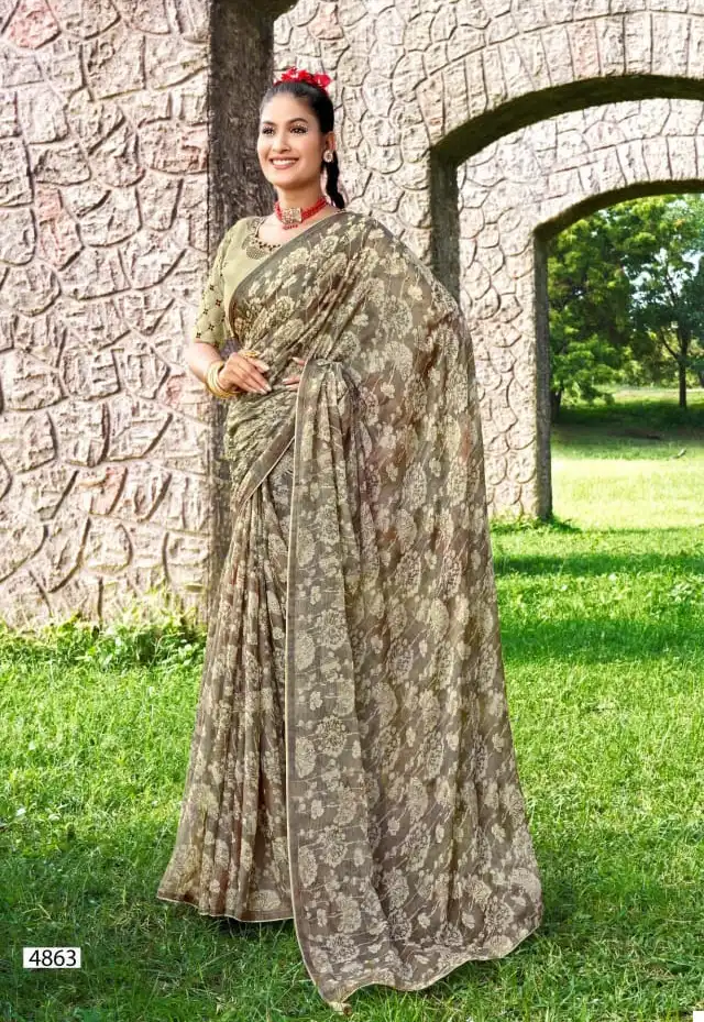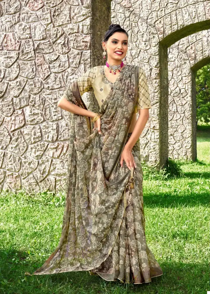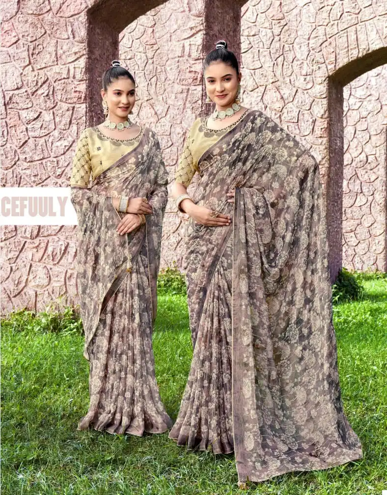 - Saree: Bright Chiffon Brasso Viscose with Foil Print