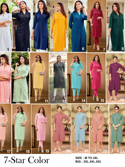 7 Star Combo Set Wholesale Chikankari Sequin Kurti with Bottom Collection.