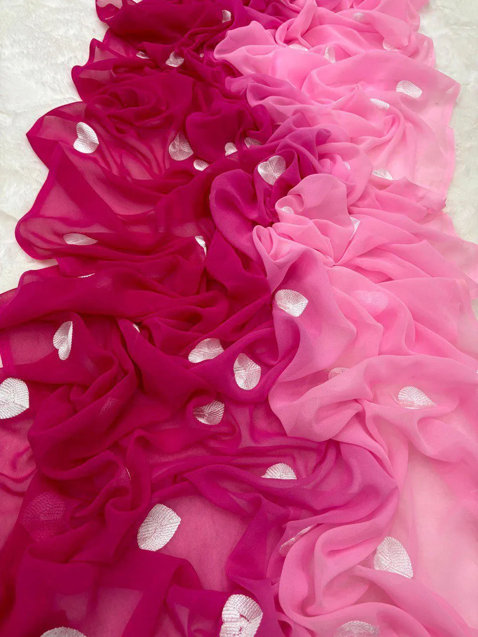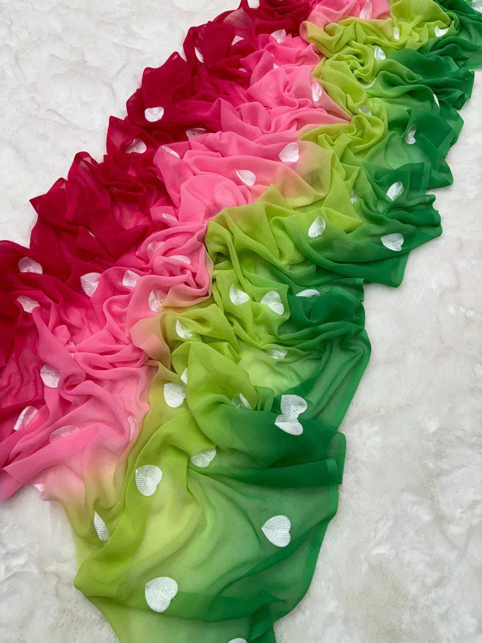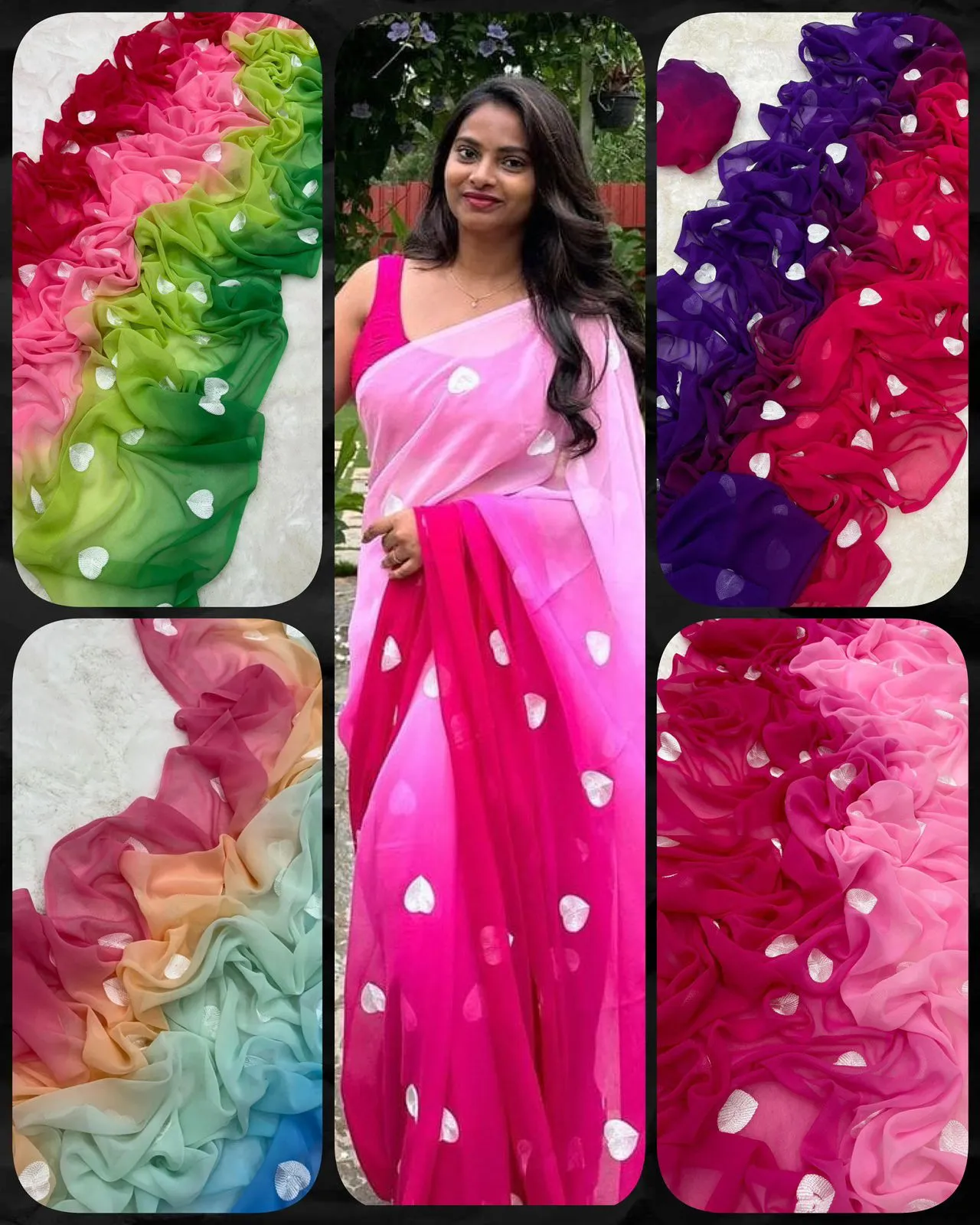 | Saree | Georgette Peding Saree With Gorgeous Gamthi Embroidery Heart Work In All Over Saree |