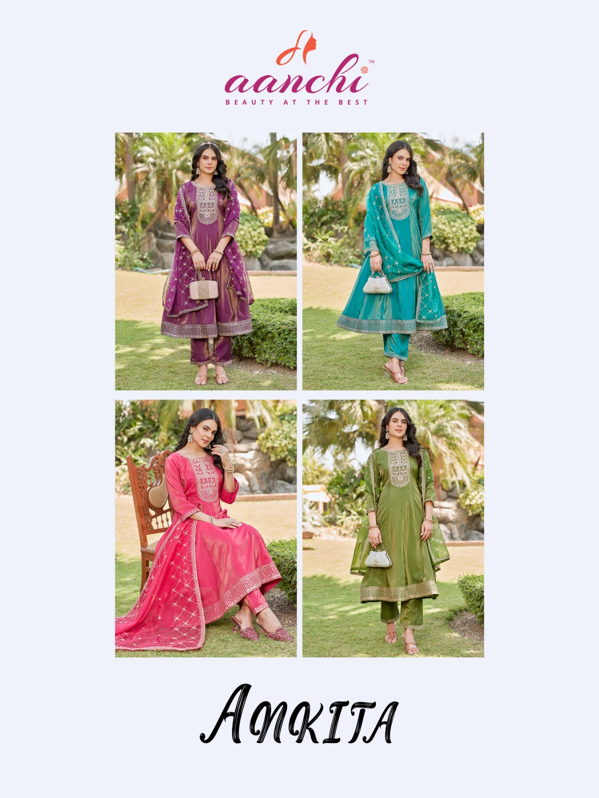 Aanchi Ankita Roman Shimmer Flared Kurti with Bottom & Dupatta Collection