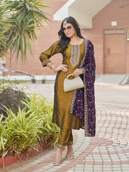 Aanchi Imani Rangeela Silk Straight Kurti with Bottom & Dupatta Collection