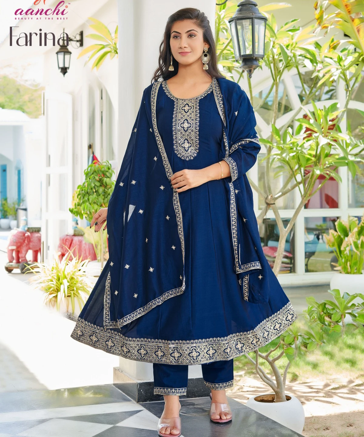 - Bottom: Matching Vichitra Flair Kali Lining for a coordinated and elegant look.