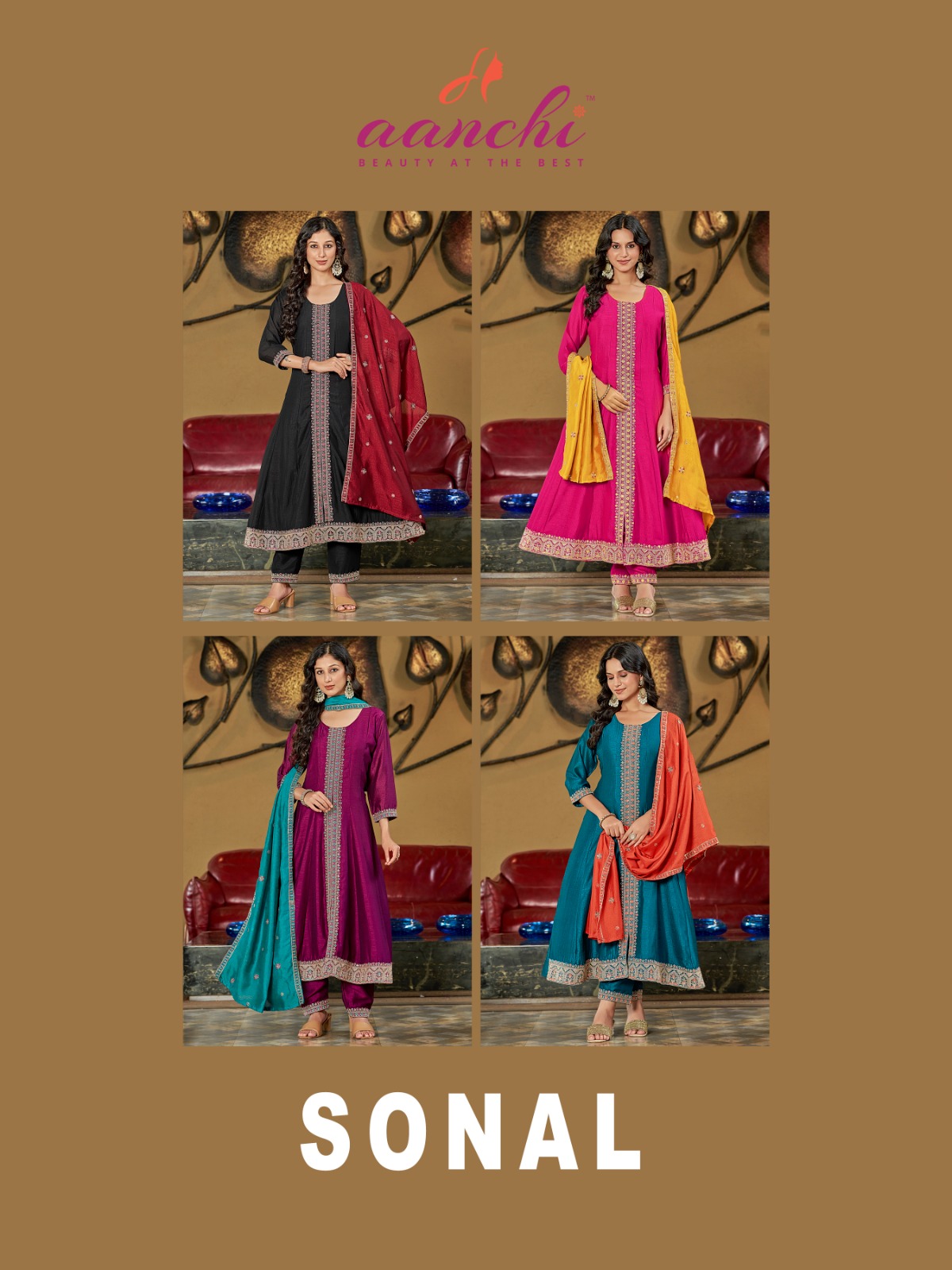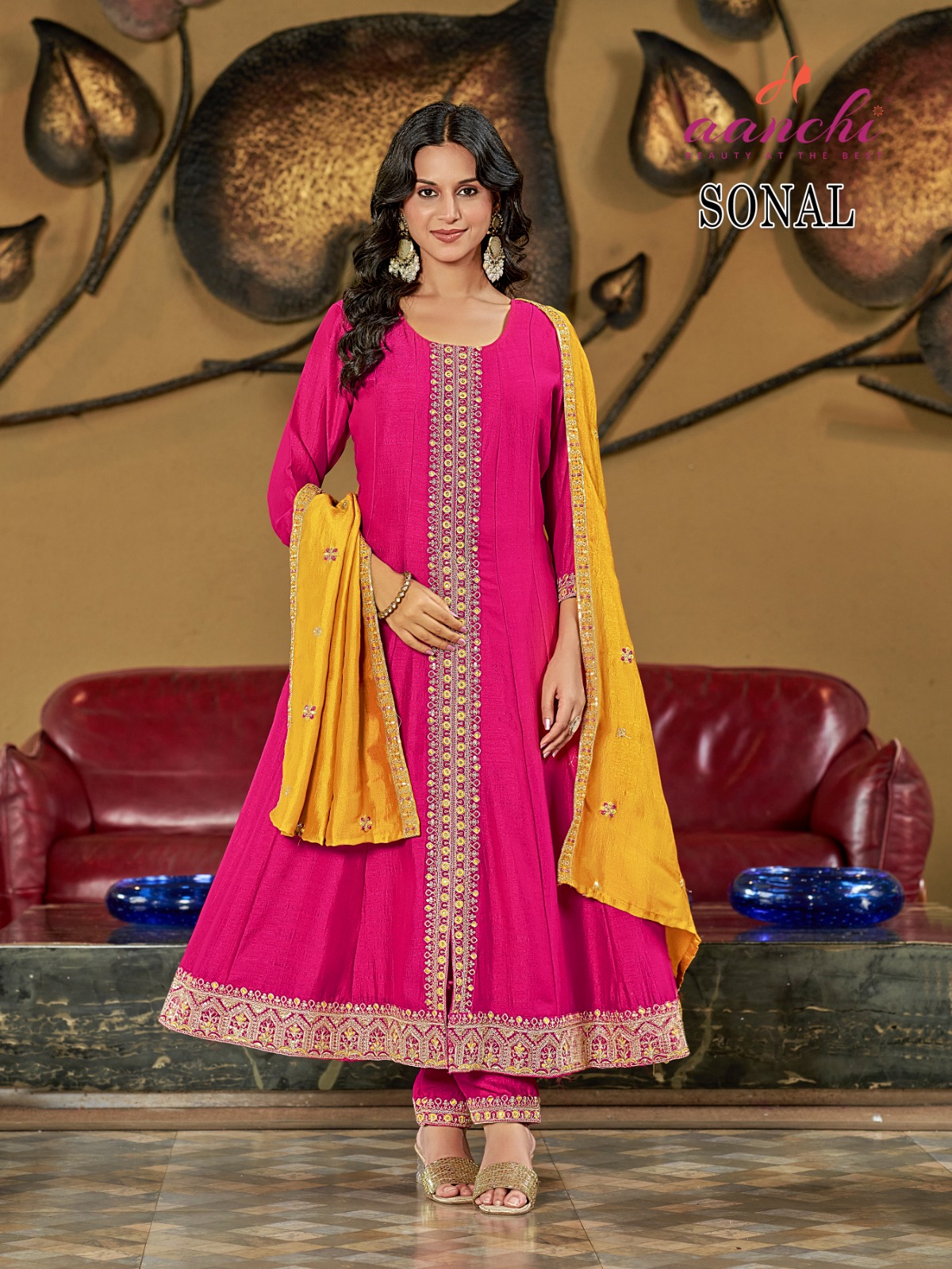 Aanchi Sonal Wholesale Vichitra Silk Flair Anarkali Kurti Catalog.