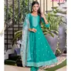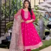 Discover timeless grace with Aanchi’s Sweety collection – a 3-piece stitched designer suit set crafted from premium Roman Silk fabric. The set includes a flair-style top and matching bottom with a stunning organza fancy dupatta adorned with fine detailing. Designed for festive occasions and elegant gatherings, this ensemble offers both comfort and a luxurious appeal.