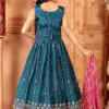 | Top | Multi Color Thread Sequence Embroidery Work on Chinon |