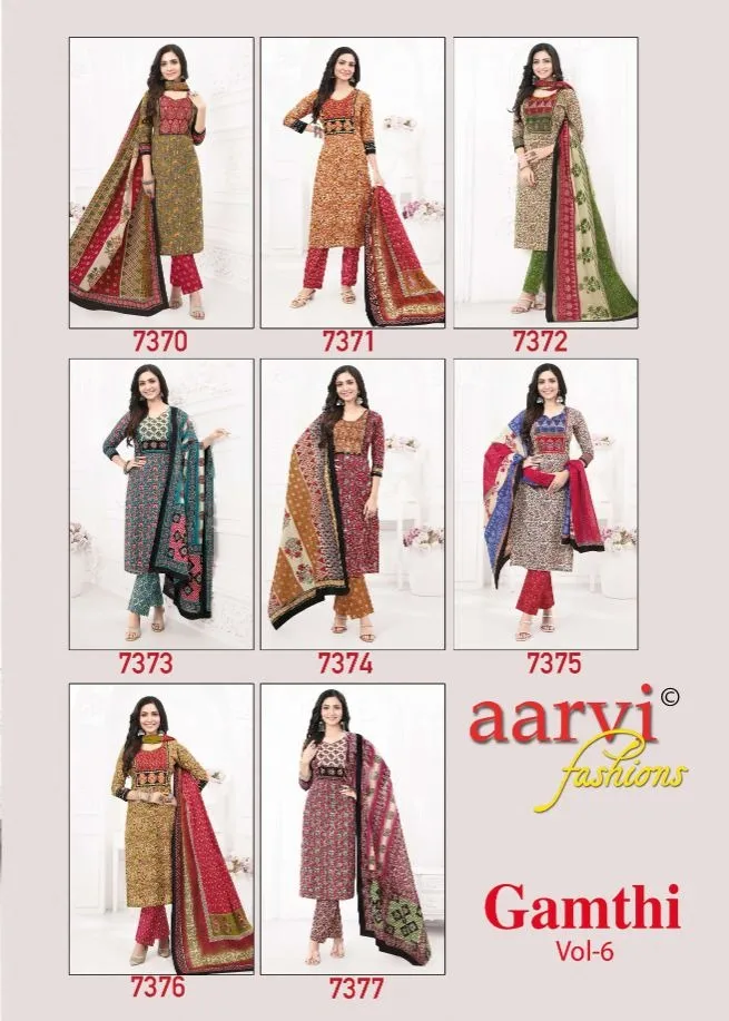 Aarvi Gamthi Vol 6 Cotton Kantha Wholesale Readymade Salwar Suit Collection