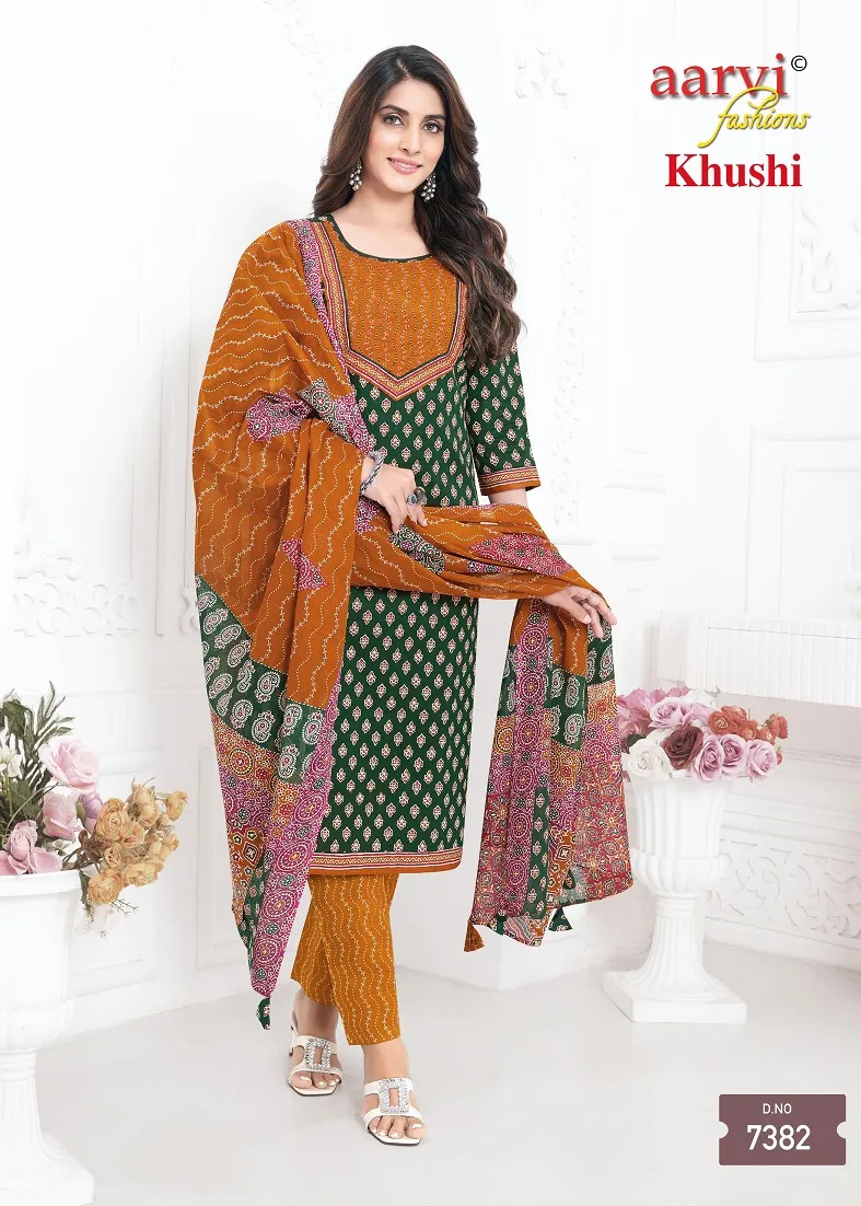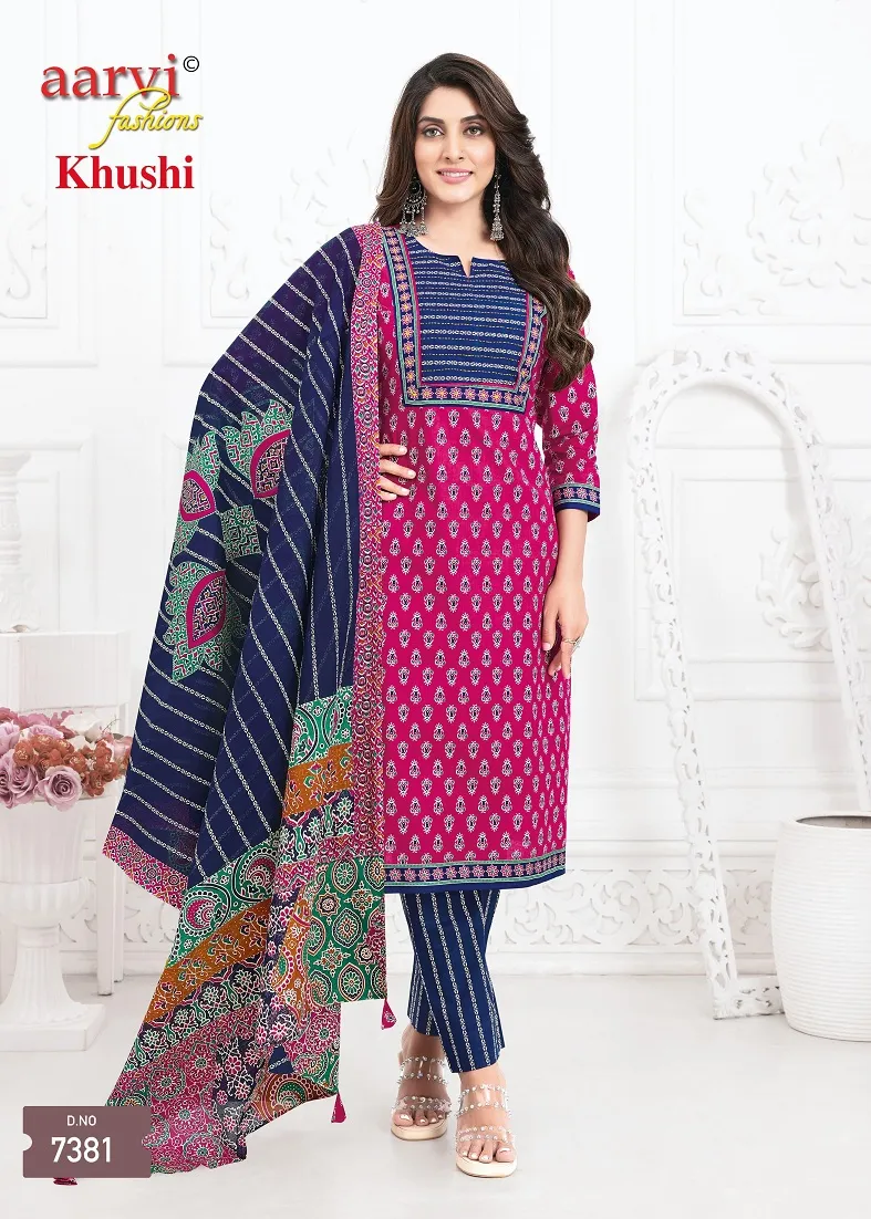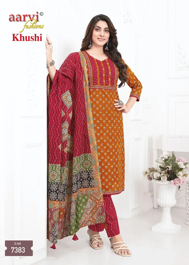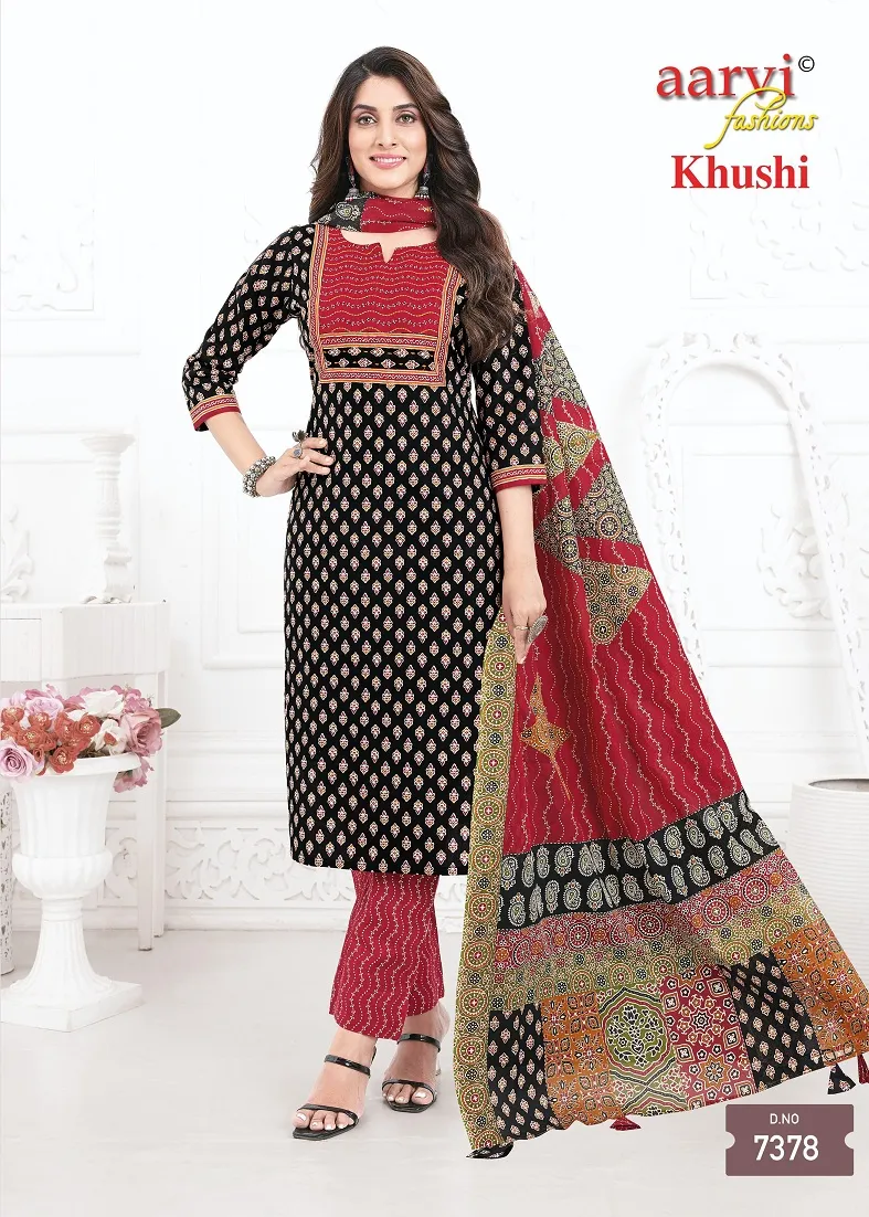 Aarvi Khushi Vol 1 Cotton Ajrakh Printed Kurti Bottom With Dupatta Catalog