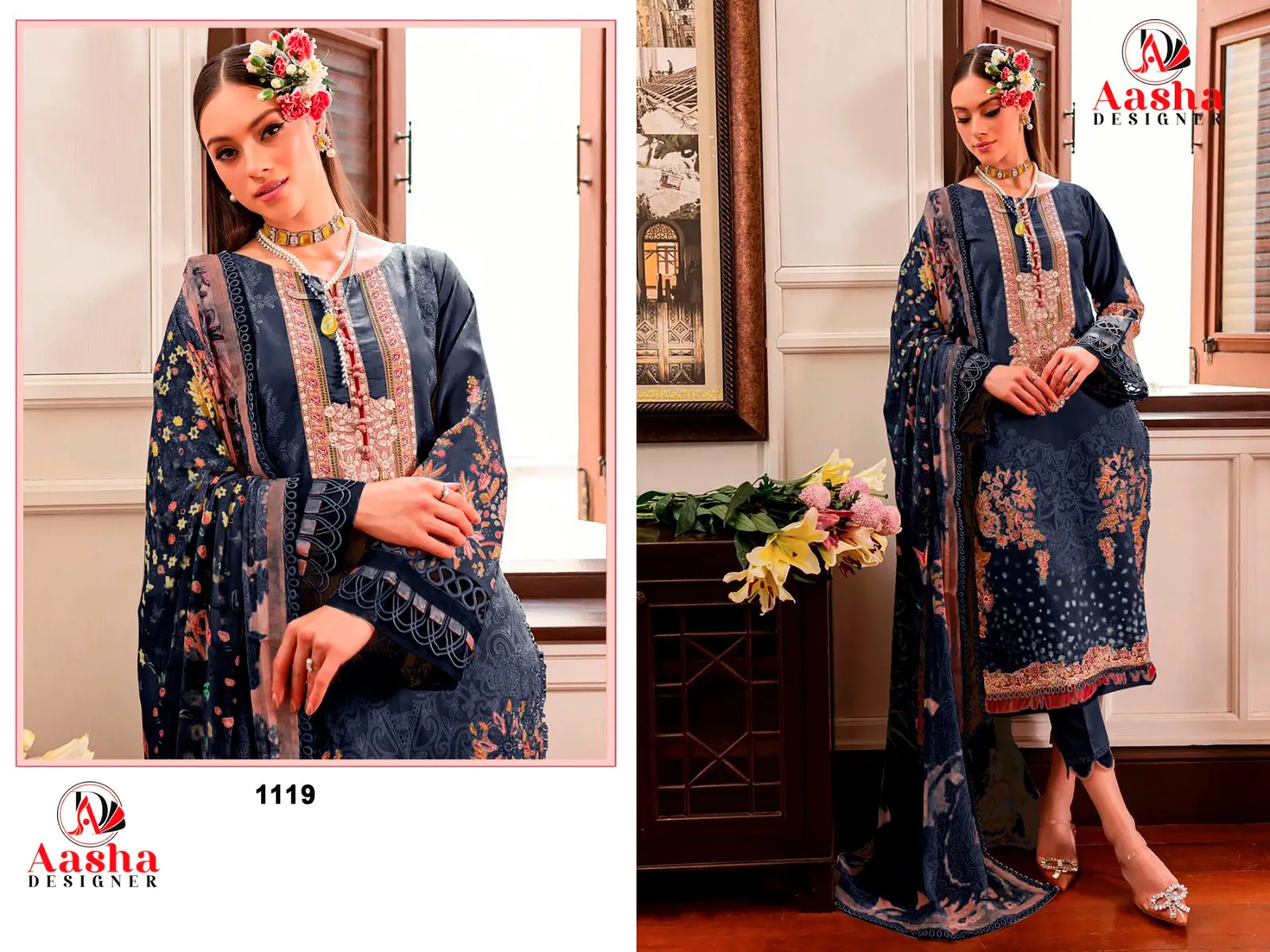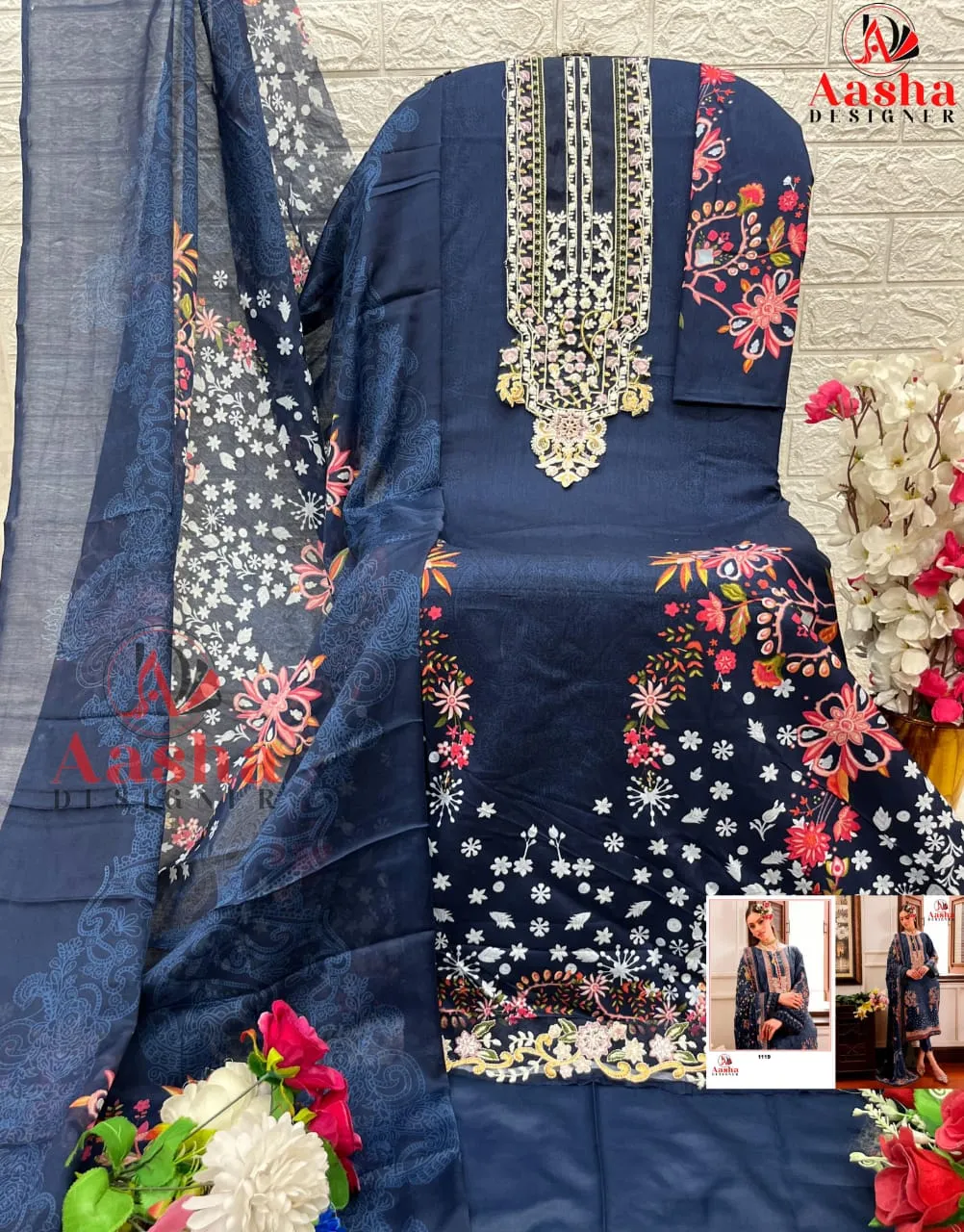 Aasha 1119 Cotton Dupatta Wholesale Pakistani Salwar Suit Collection