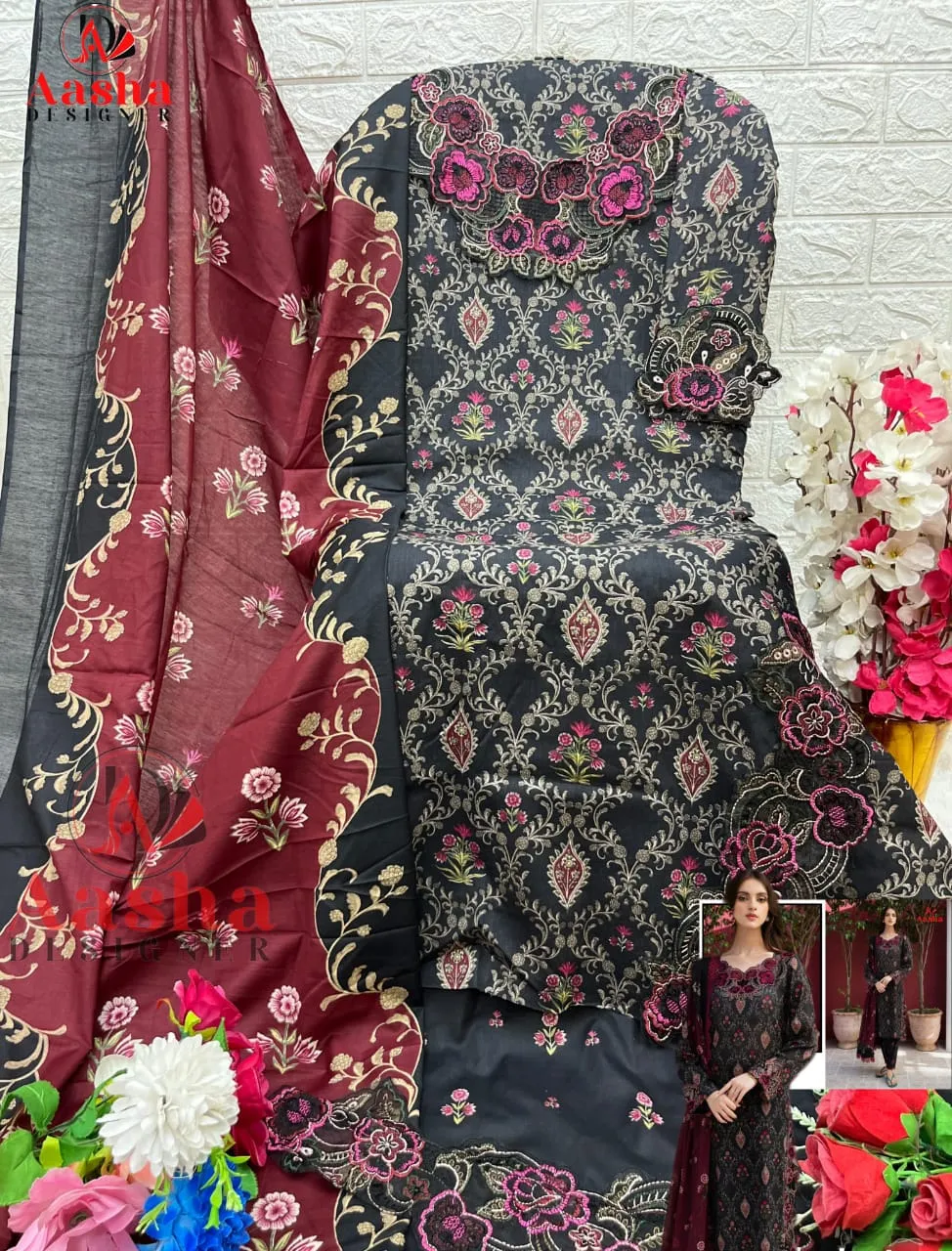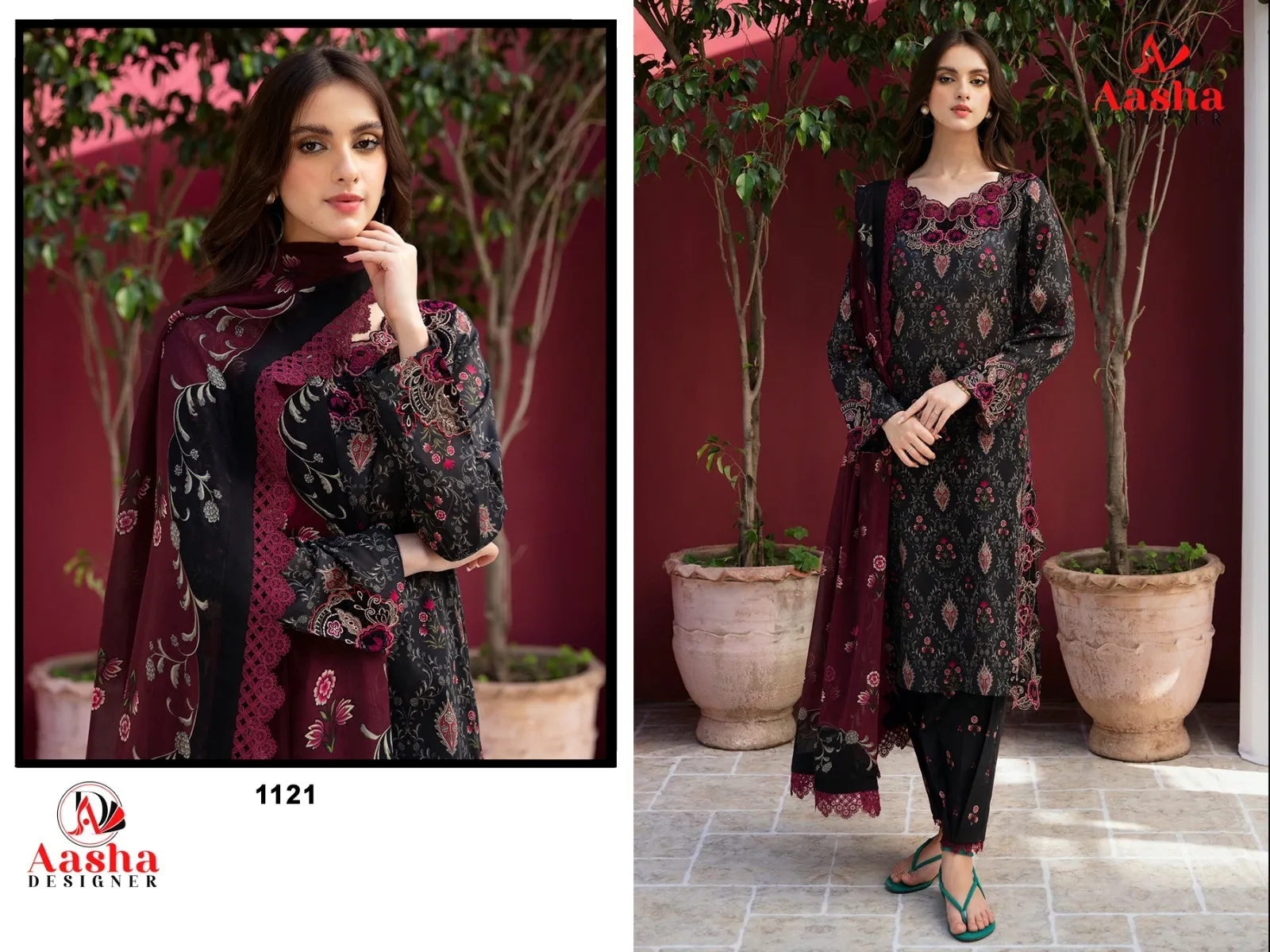 Aasha 1121 Cotton Dupatta Wholesale Pakistani Suit Collection