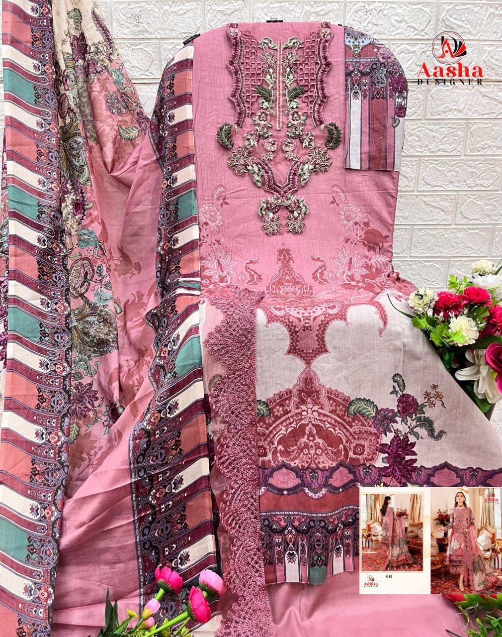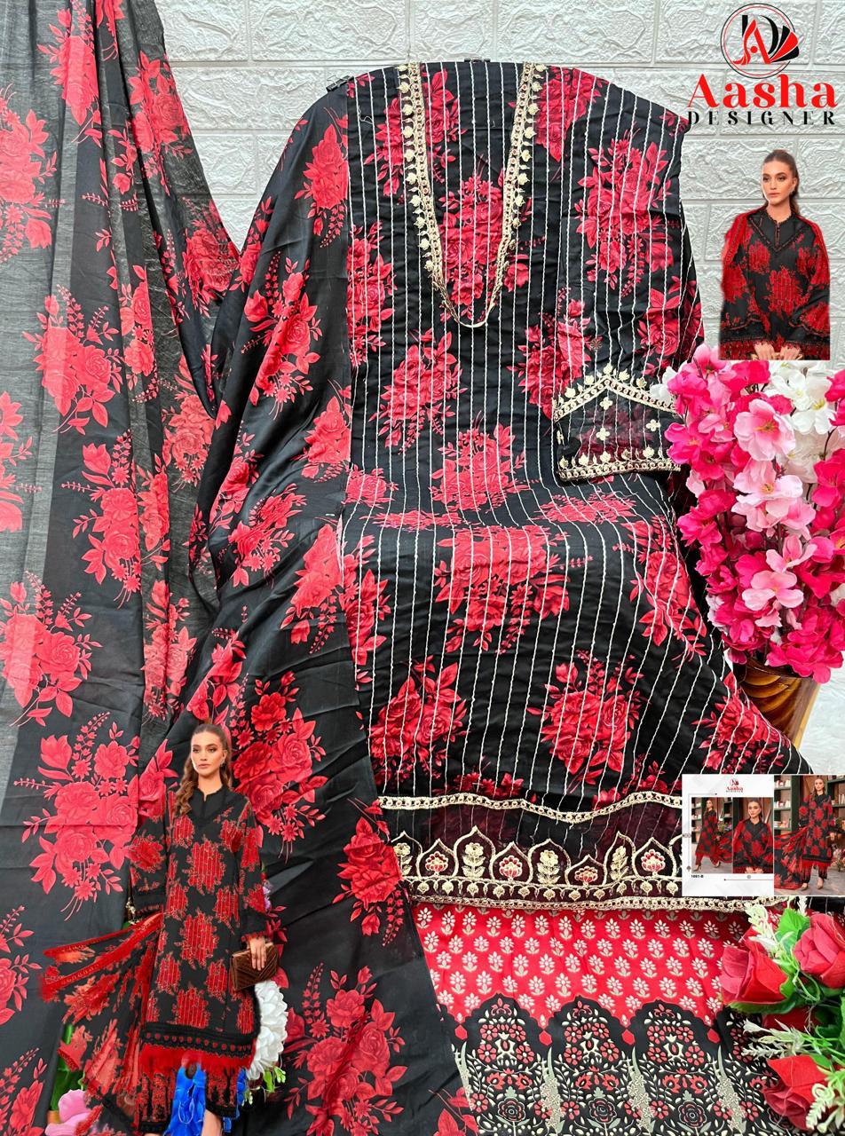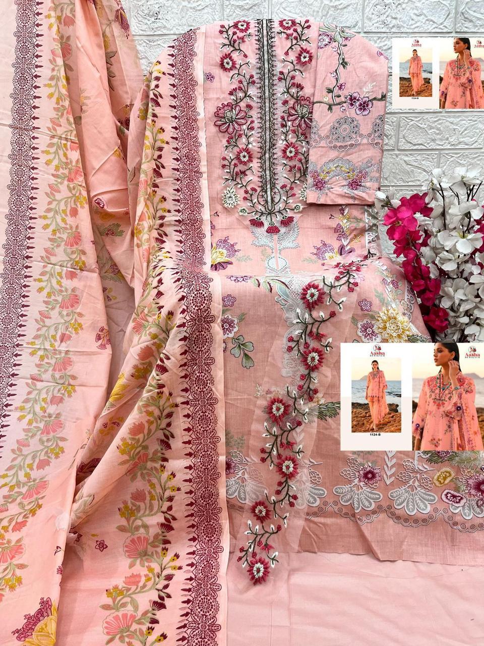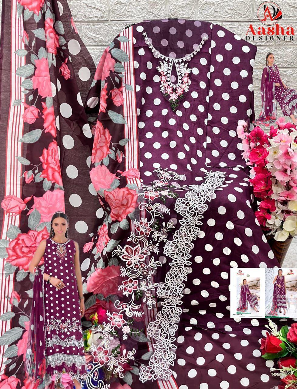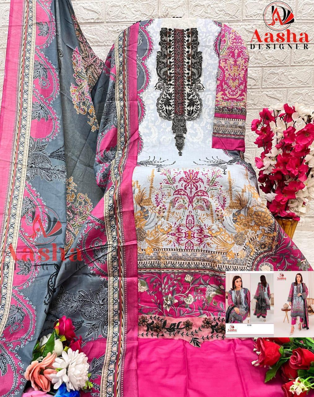 Aasha Designer Wholesale Cotton Embroidered Pakistani Suit.