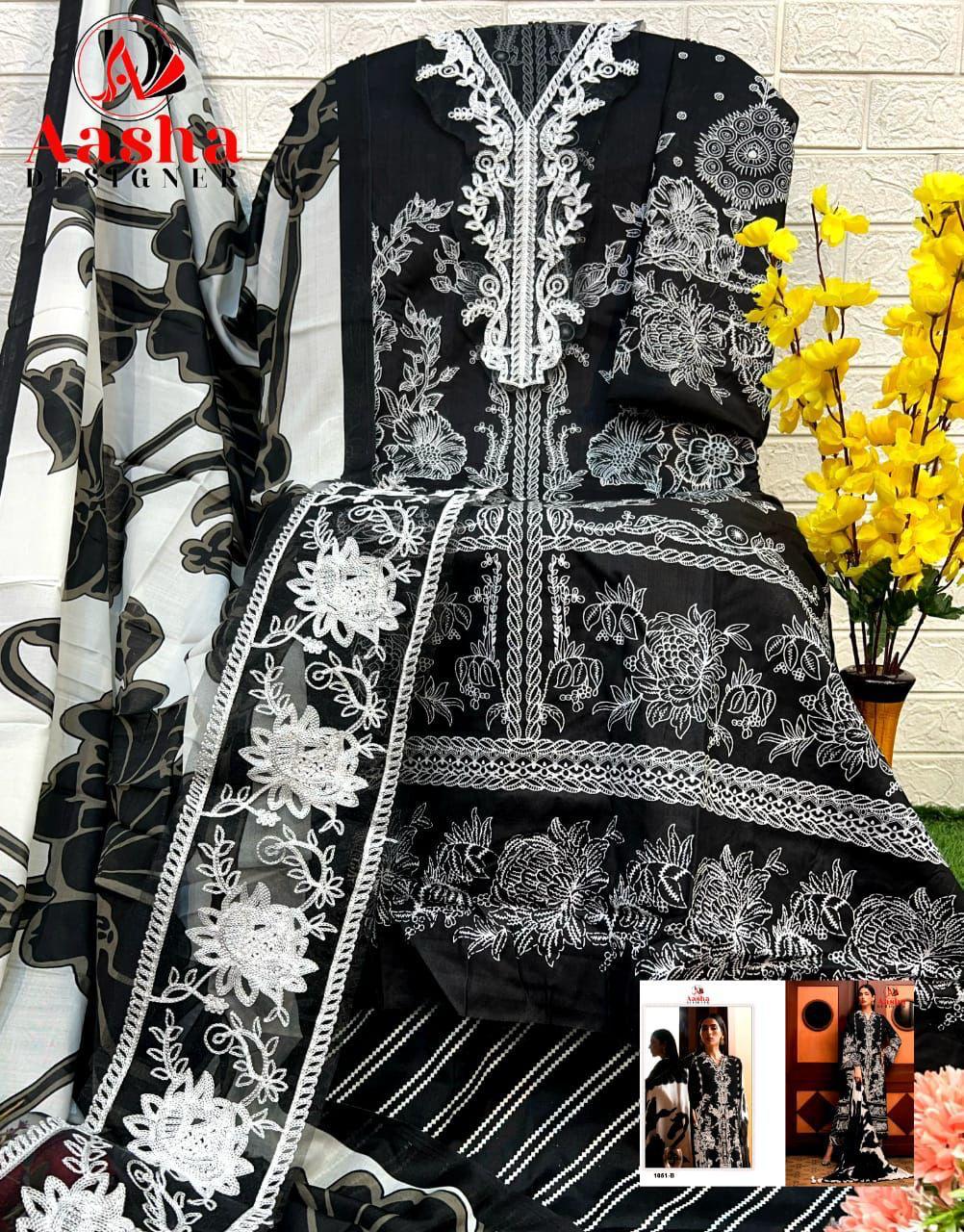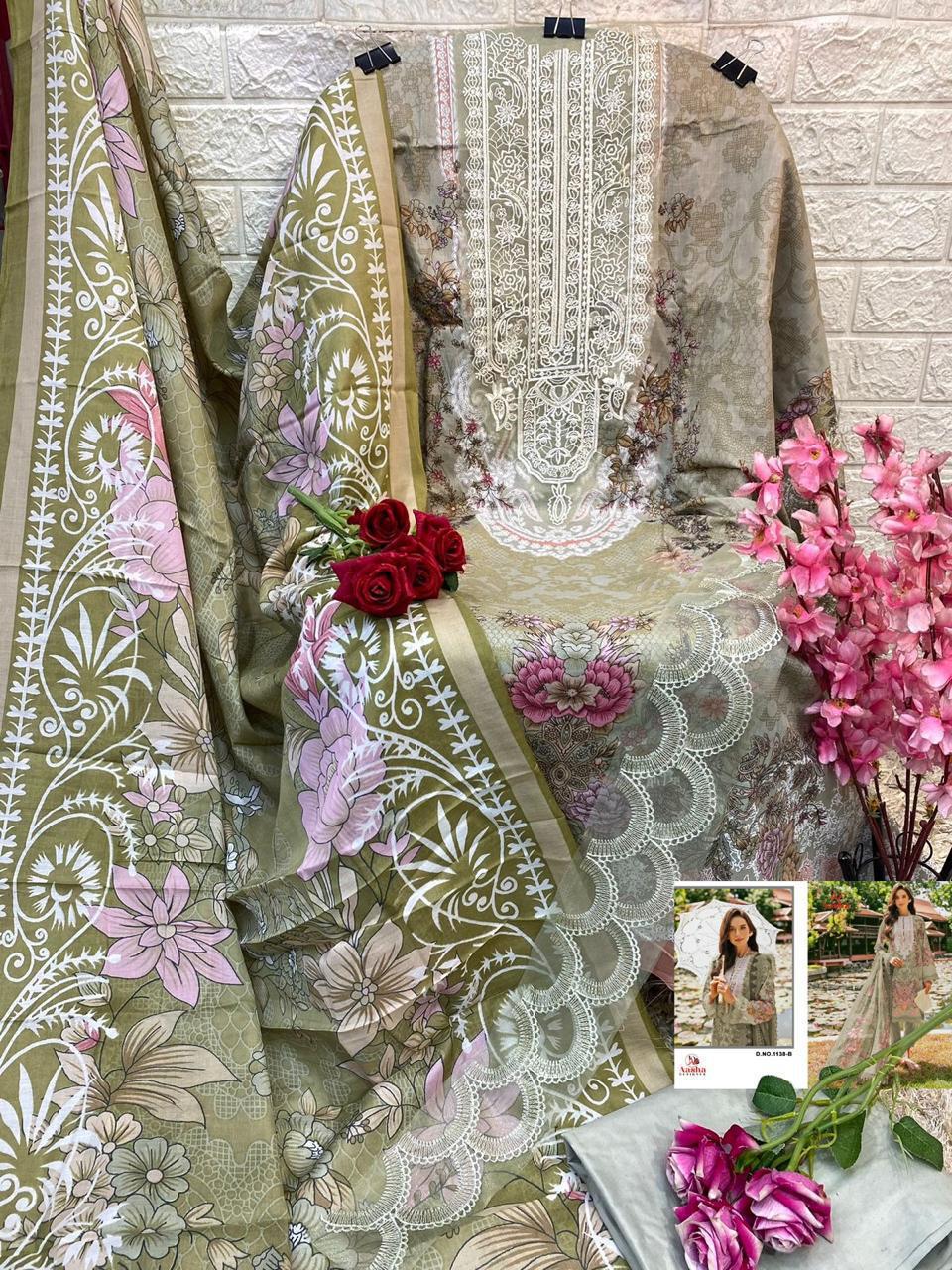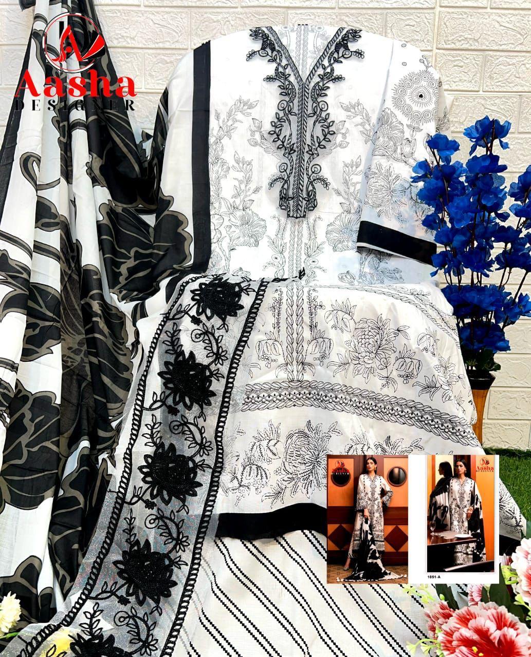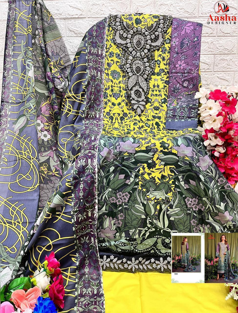 Aasha Designer Wholesale Cotton Embroidered Pakistani Suit.