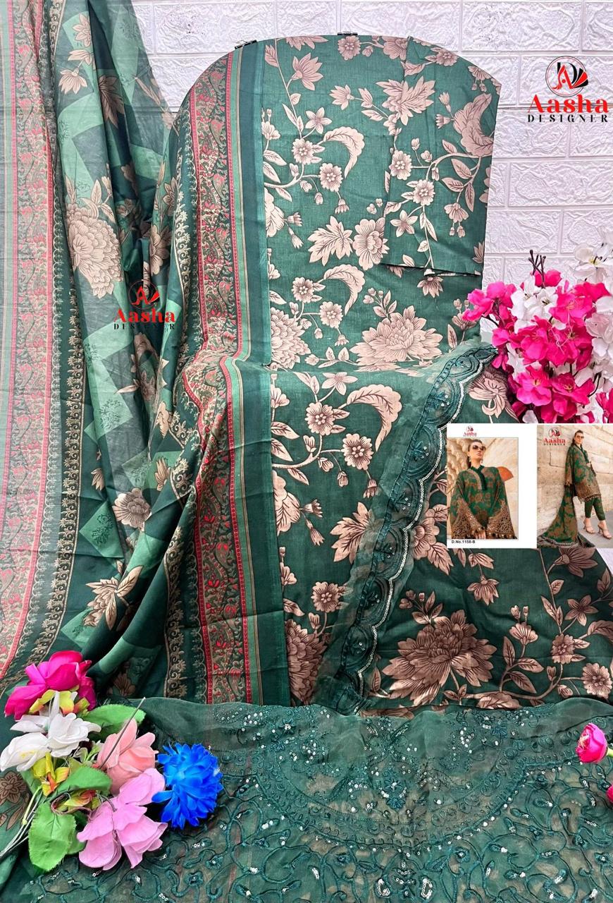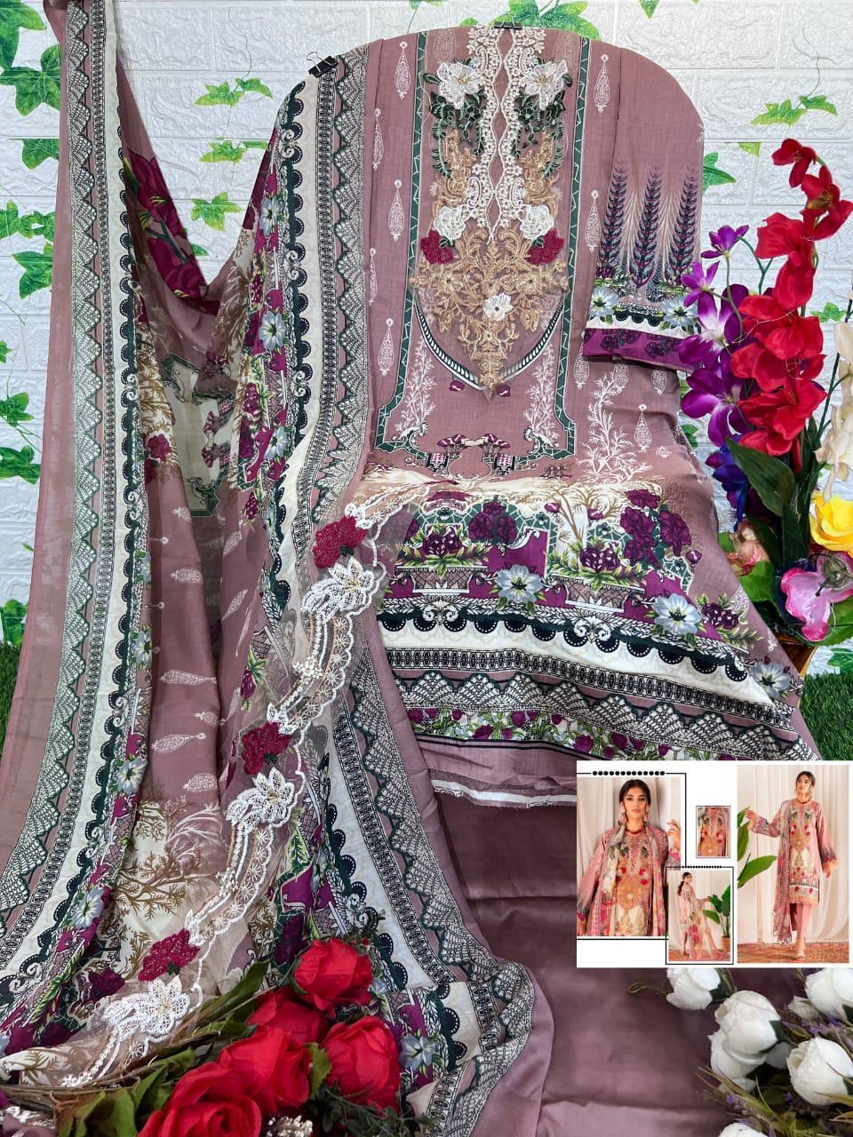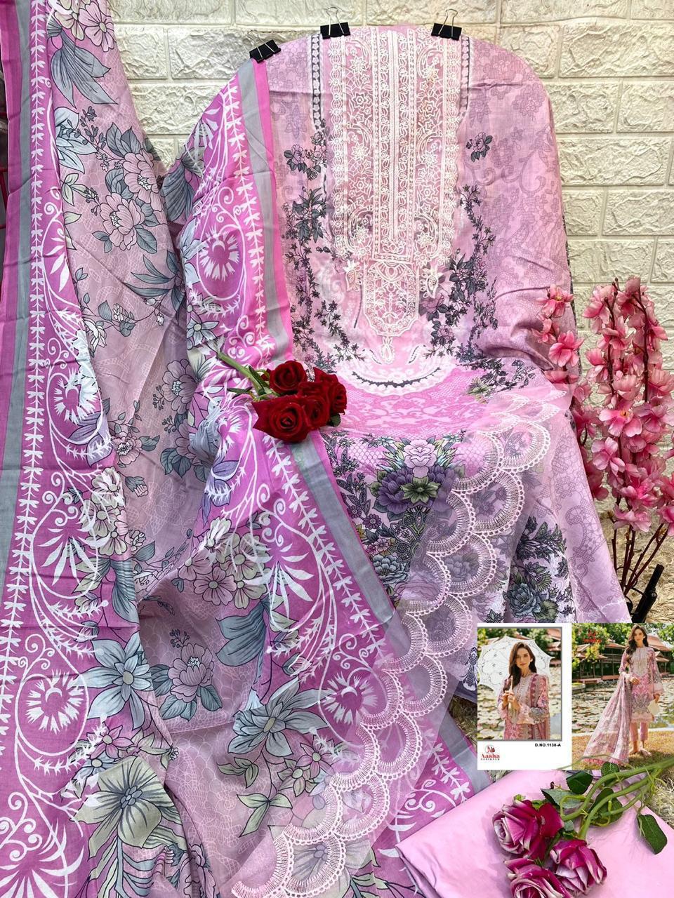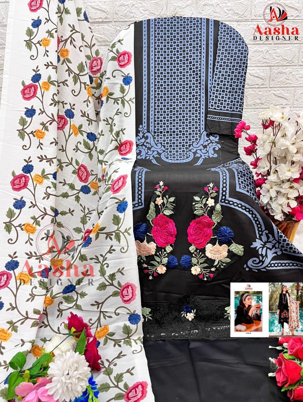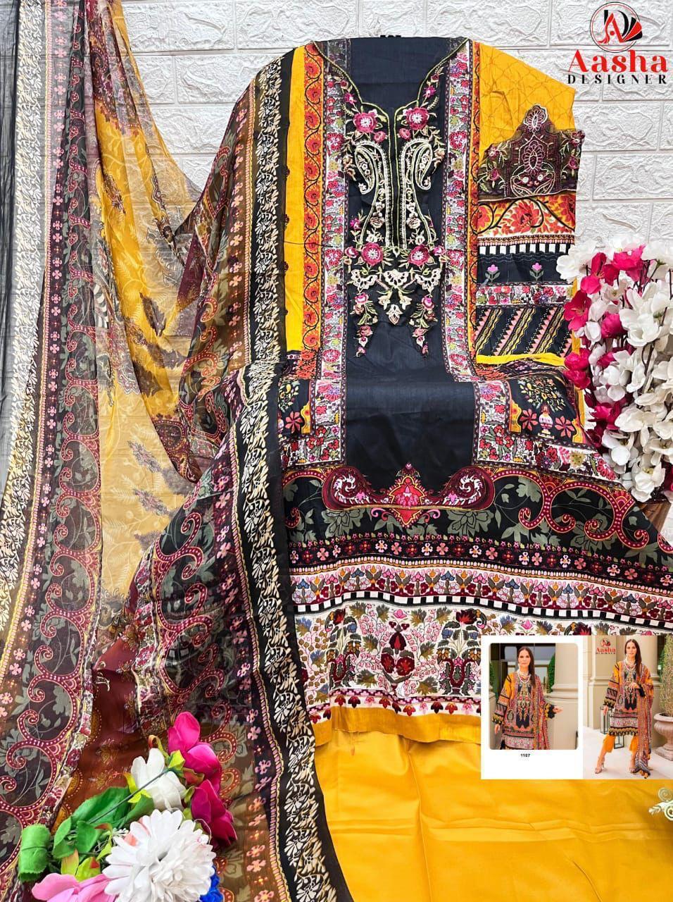 Aasha Designer Wholesale Cotton Embroidered Pakistani Suit.