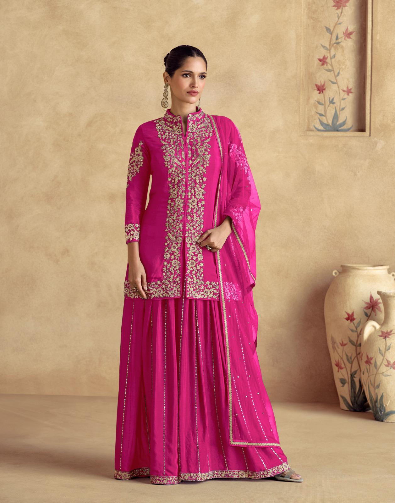 ✔ Plazzo: Premium Chinnon Silk (Free Size Stitched)