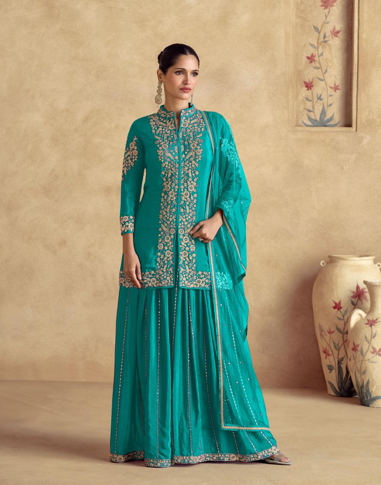 ✔ Top: Premium Chinnon Silk (Free Size Stitched)