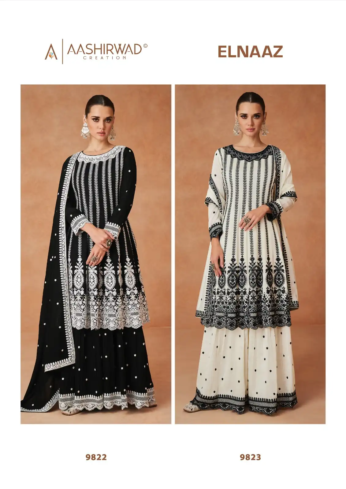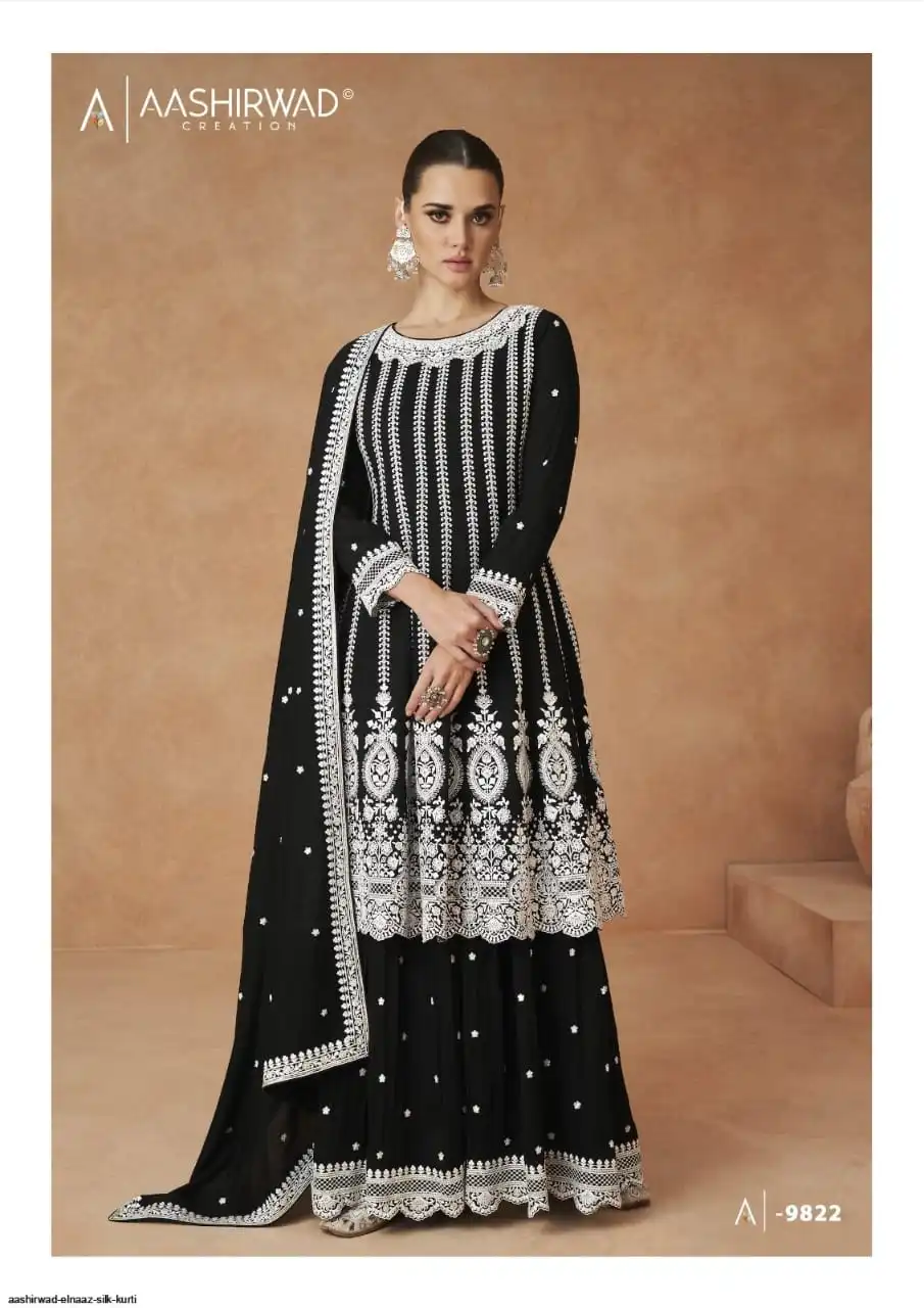 Aashirwad Creation Elnaaz Premium Silk Designer Wholesale Salwar Suit. Crafted from the finest premium silk, this ensemble promises not just unparalleled comfort, but also an elegant drape that enhances your natural grace. Feel the soft, smooth texture against your skin, The set includes a meticulously designed top, bottom, and dupatta, all made from the same high-quality silk, ensuring a seamless and sophisticated look from head to toe.