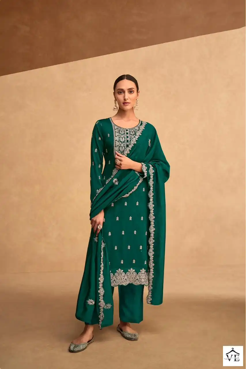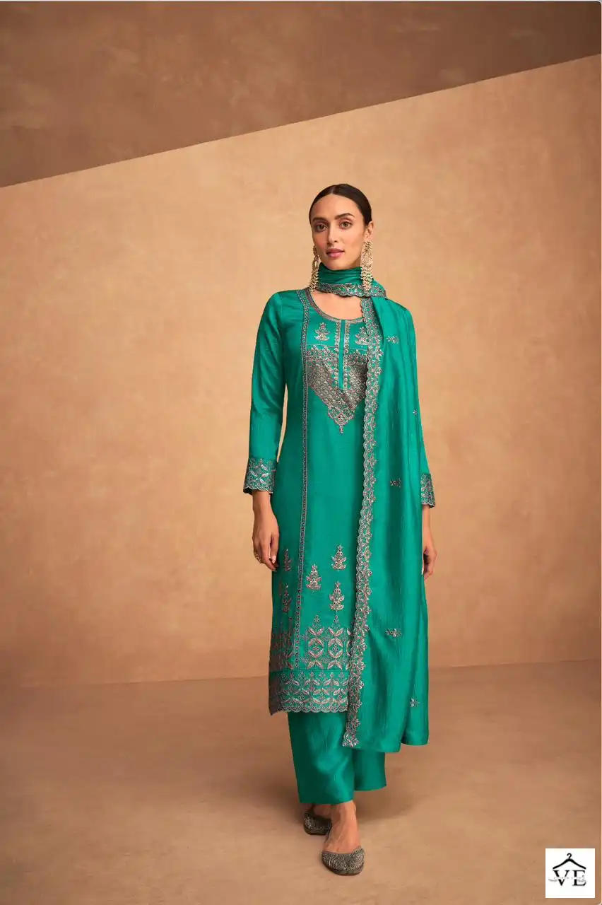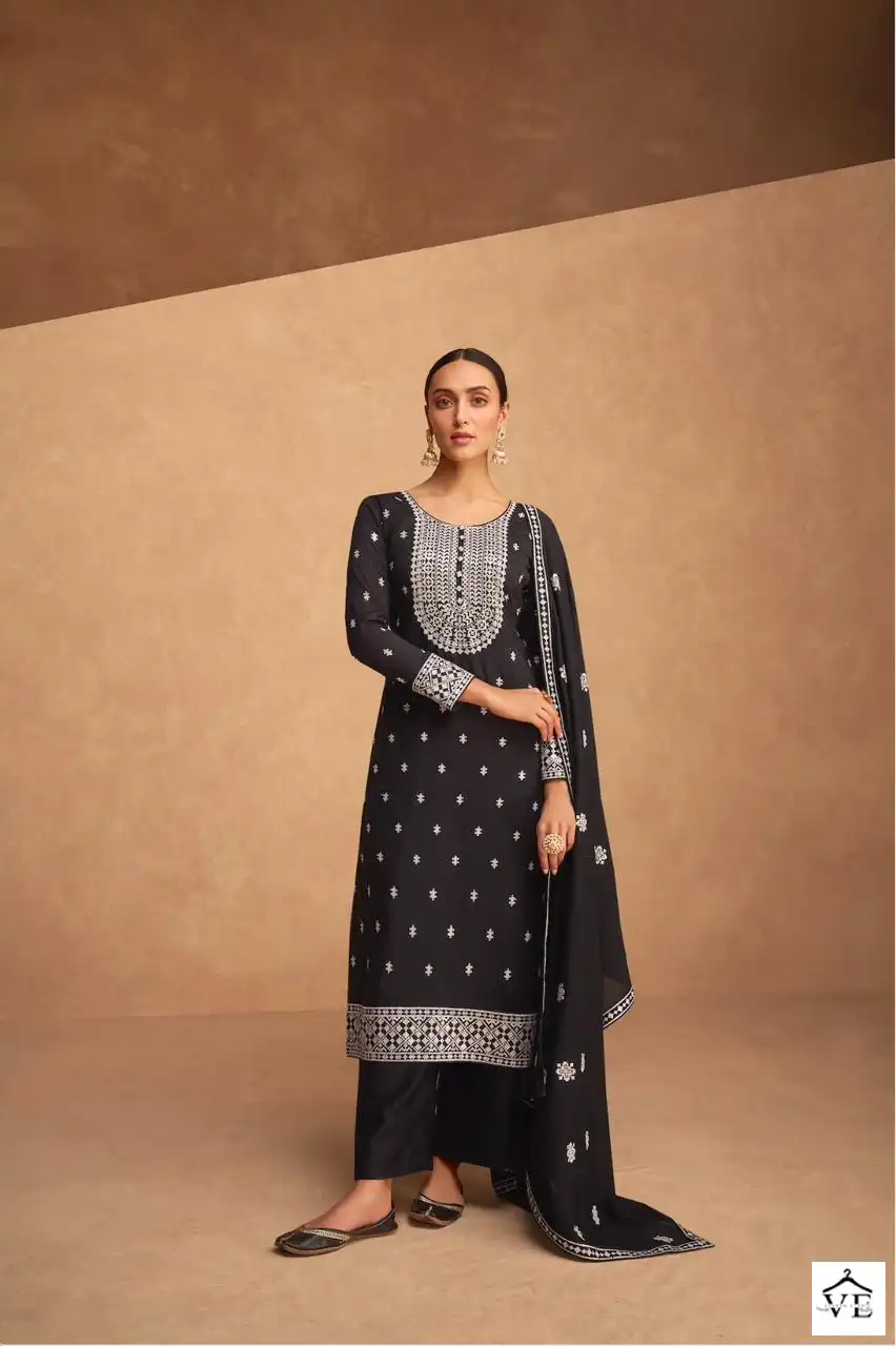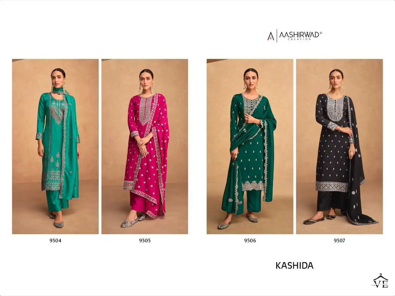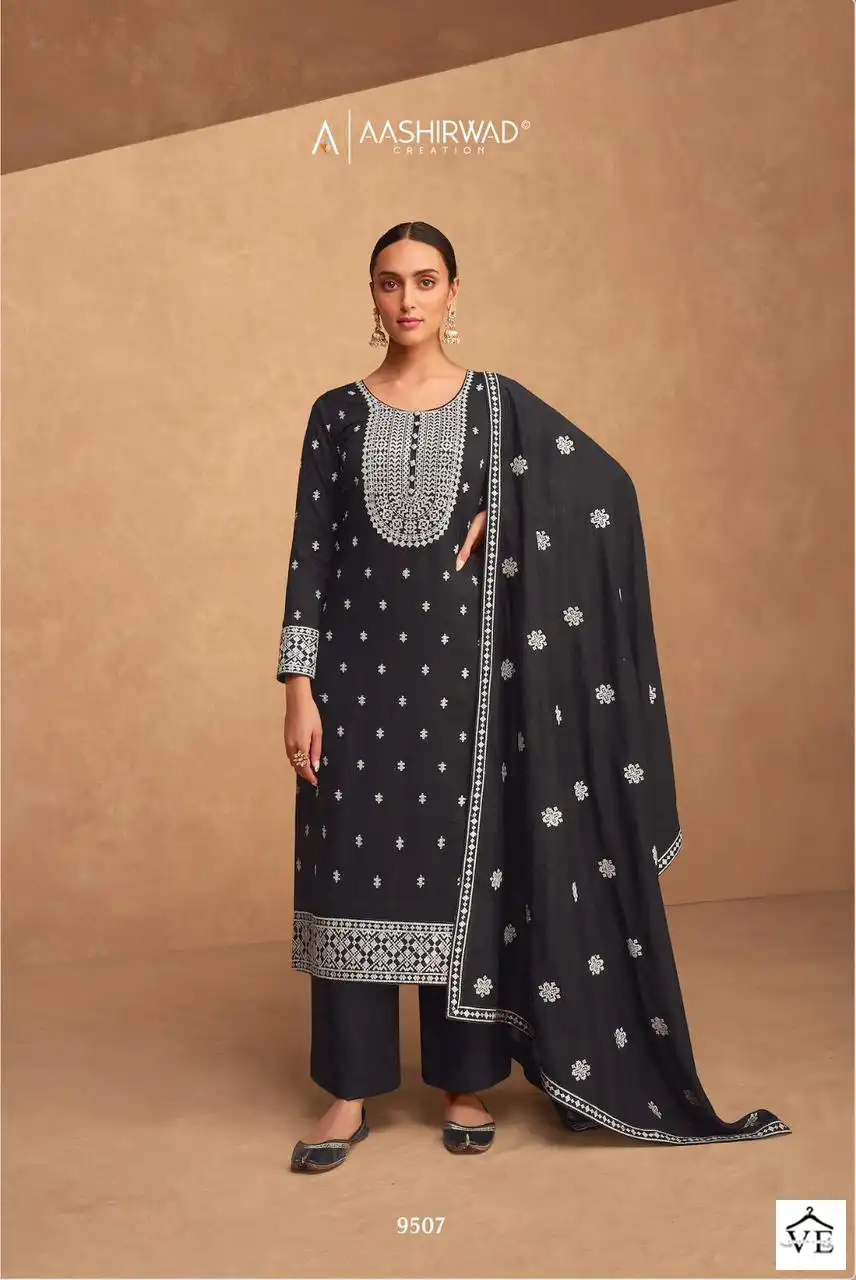Aashirwad Kashida Premium Silk Wholesale Designer Salwar Suit Catalog of 4 Pcs. We deal in Kurtis, Sarees, Dresses Materials, Leggings, and Designer Salwar Kameez.