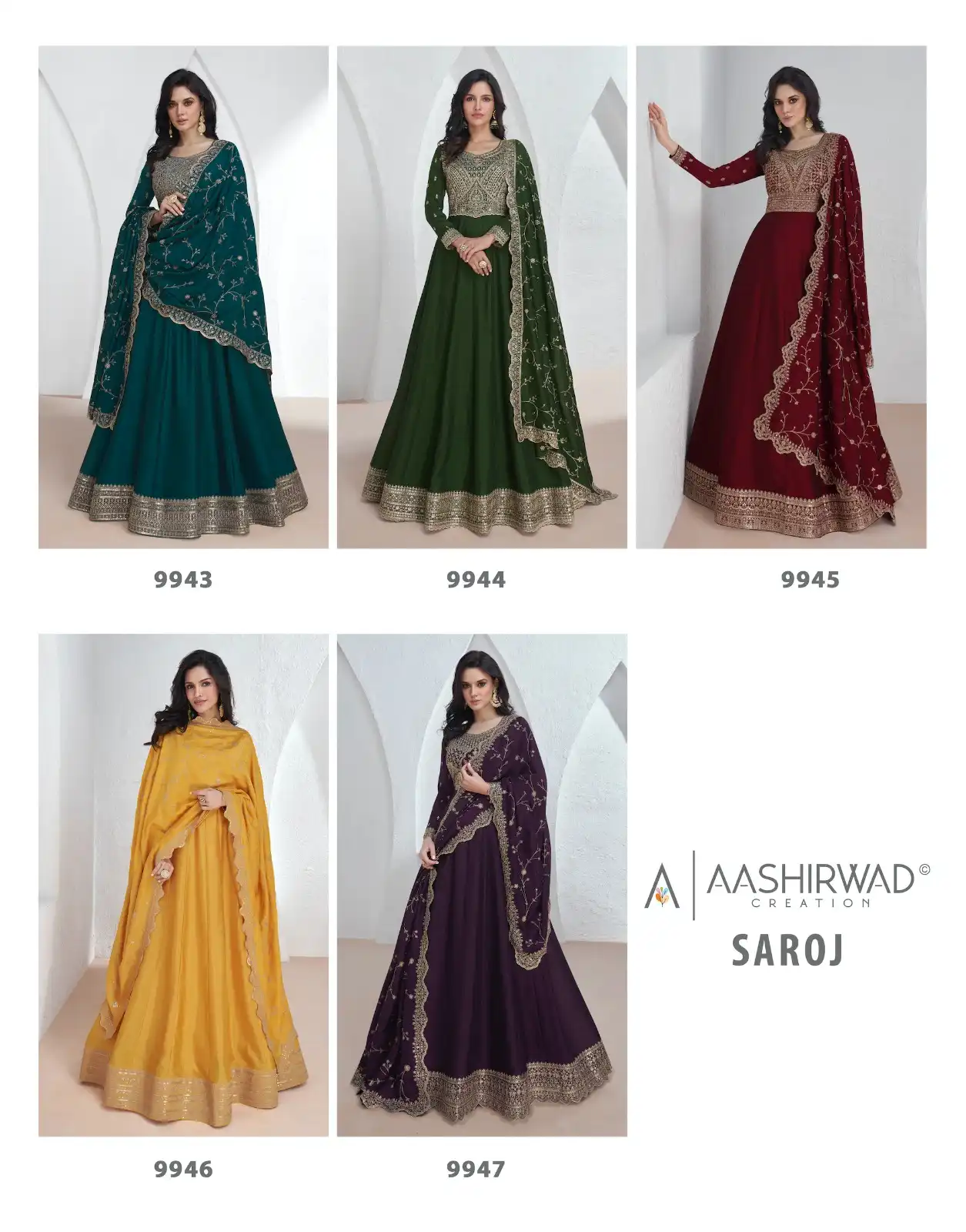 Aashirwad Saroj Premium Silk Wholesale Designer Long Gown with Dupatta Catalog