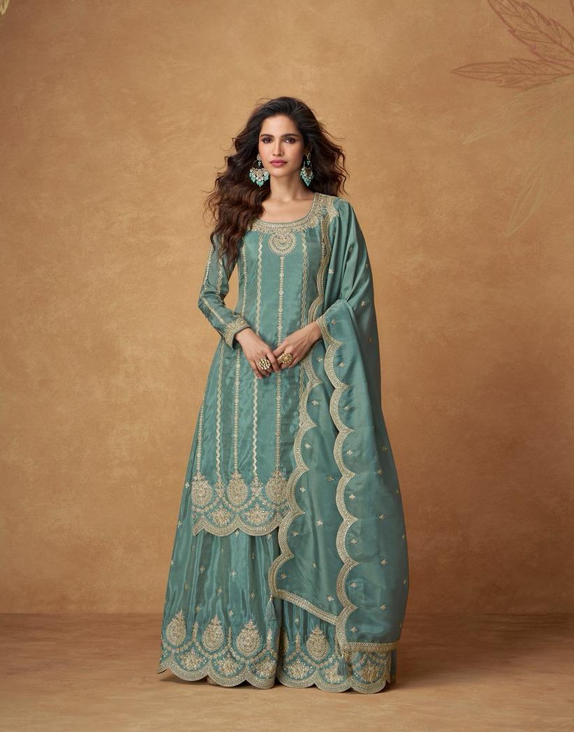 - Plazzo: Organza Simar Silk (Free Size Stitched)