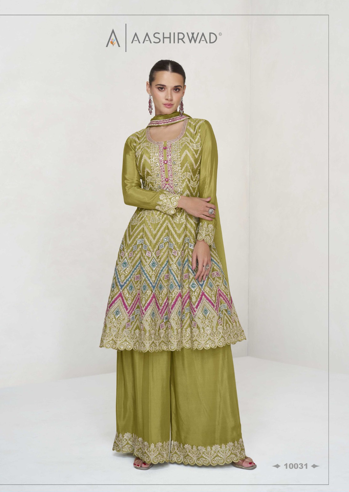 Aashirwad Vaani Premium Chinon Silk Wholesale Readymade Salwar Suit Collection