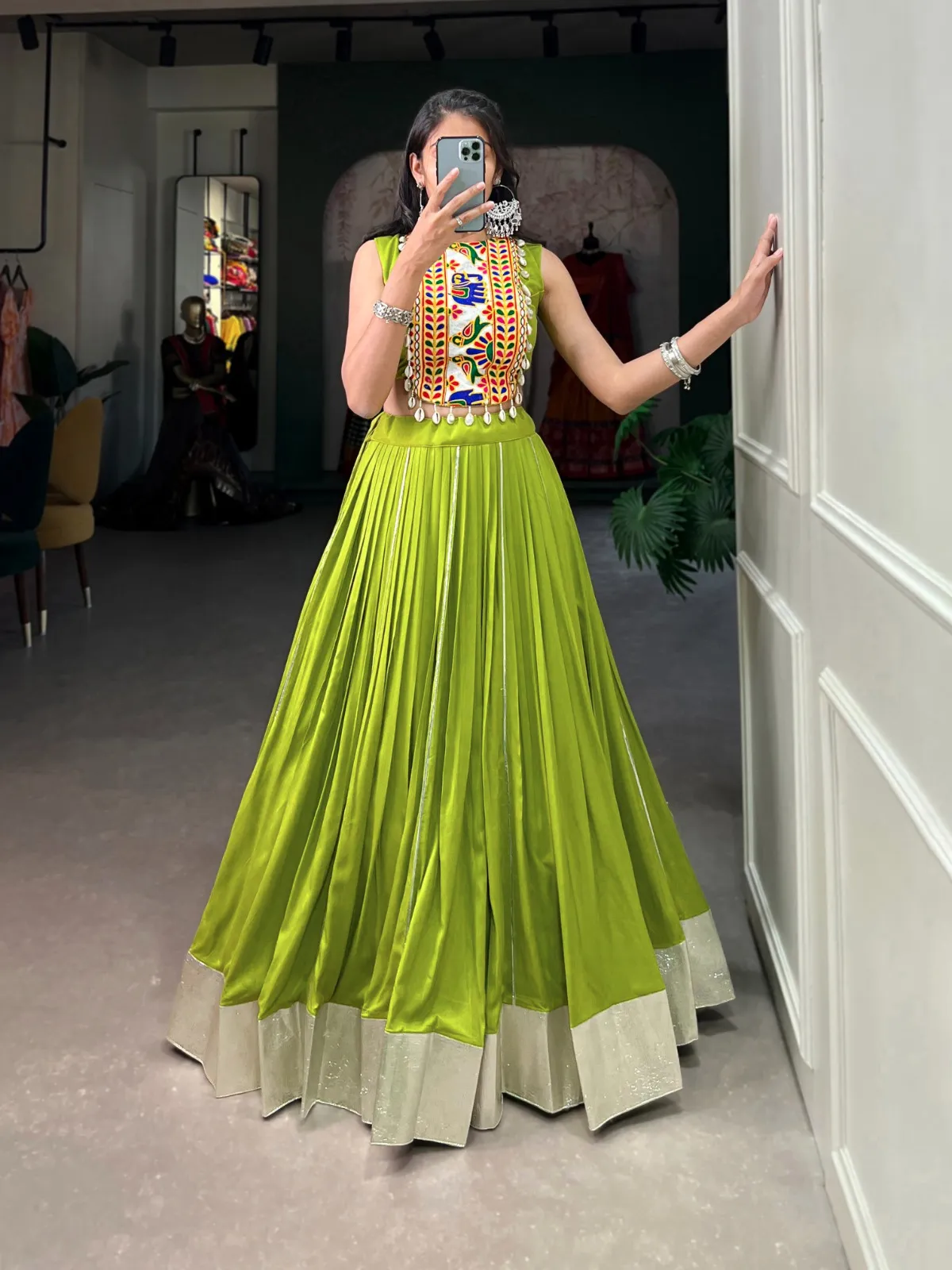 Bottom Rayon (Fully Stitched) Plain And Gamthi Work With Cowrie (Kodi) Lace Touch Up