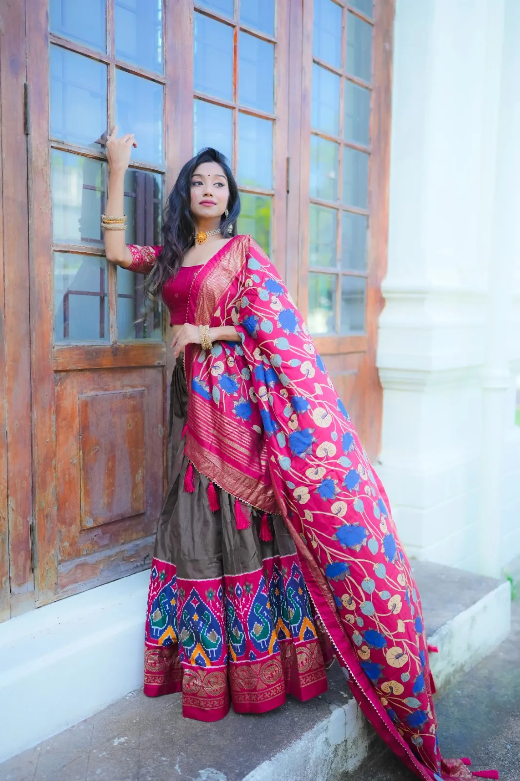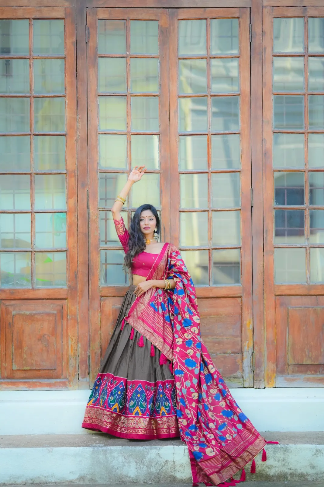 | Lehenga | Dola Silk Printed with foil work Drawstring With Heavy Tassels and Zip And Micro Cotton Inner |
