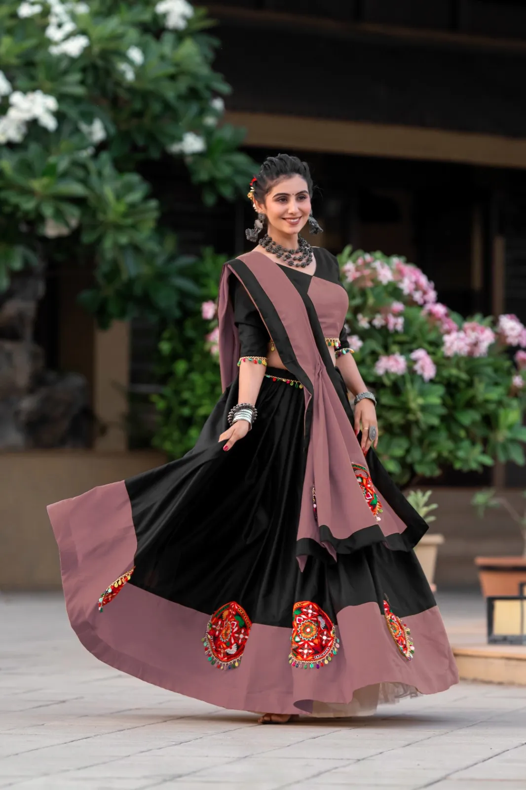 | Lehenga | Cotton | Waist: Support Up To 42 | Closer: Drawstring, Tassels | Stitched With Canvas | Length: 42 | Flair: 5 Mtr Approx | Inner: Art Silk (Stitched) |