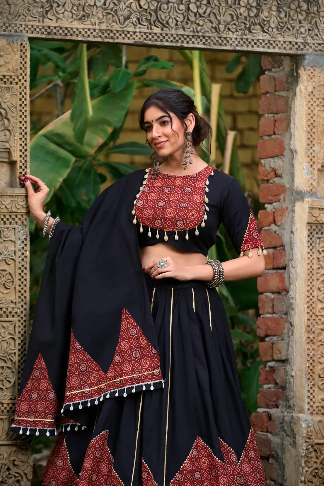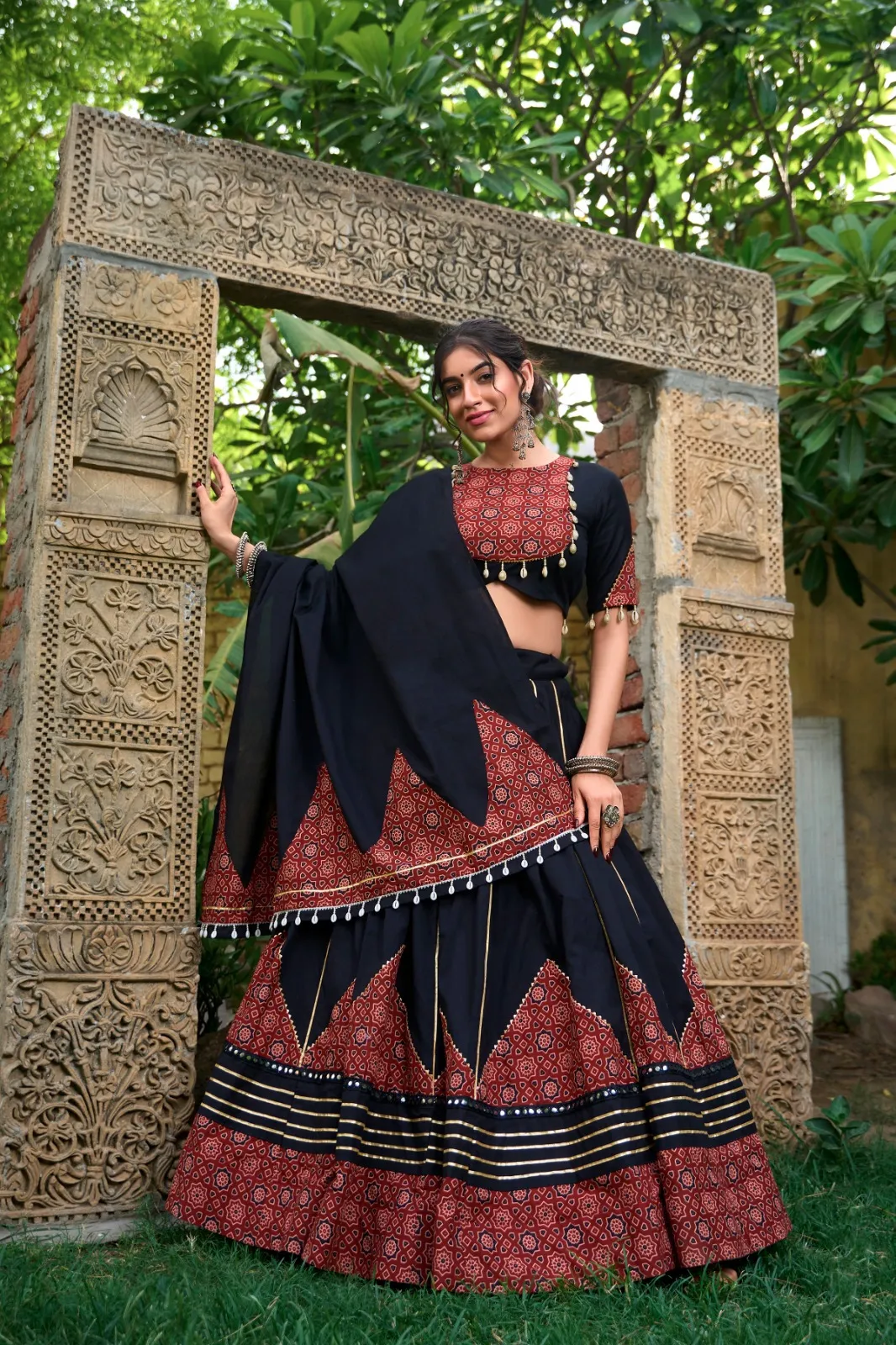 | Lehenga | Pure Cotton Plain With Printed And Paper Mirror Work Lace And Gota Patti Touch Up With Micro Cotton Inner |