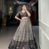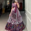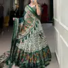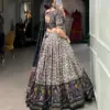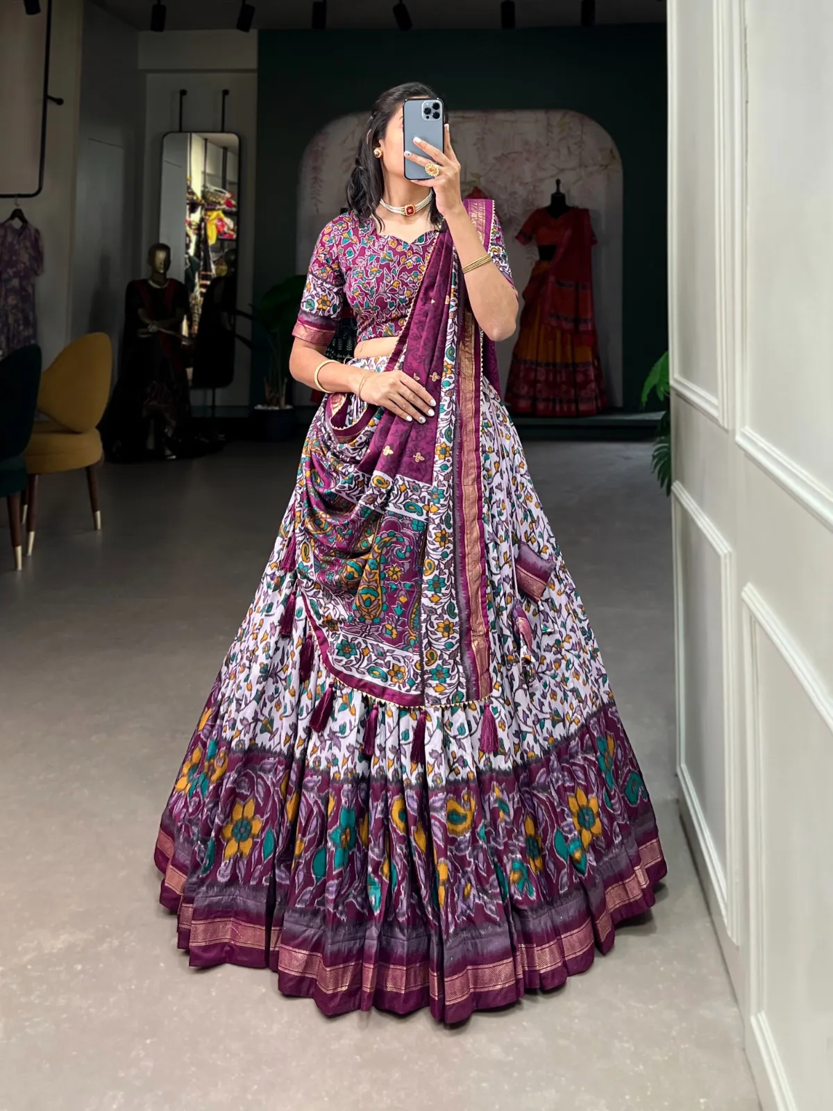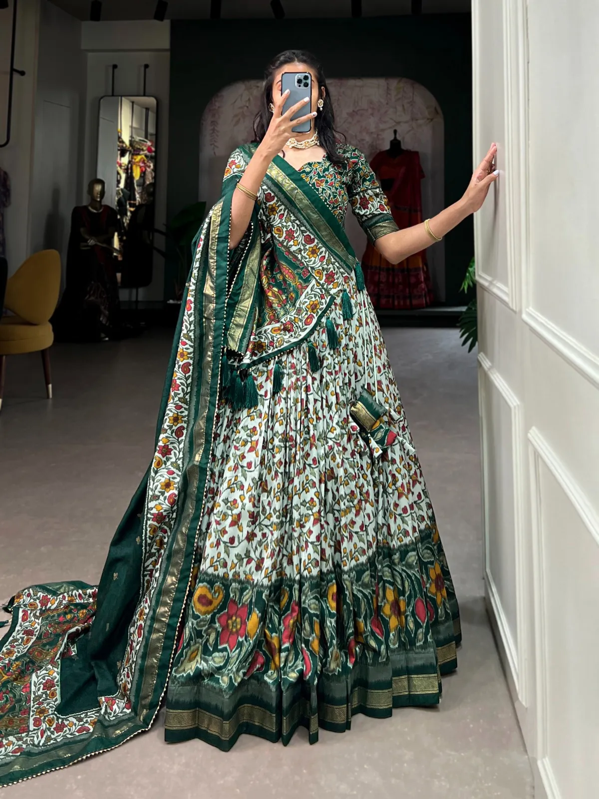 | Lehenga | Tussar Silk Floral Print With Foil Print Drawstring With Heavy Tassels and Zip |
