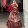 | Dupatta | Tussar Silk Floral Print and foil Print with Gotta Patti Lace Border also comes with tassels |