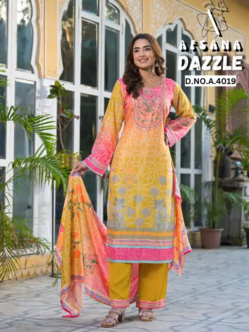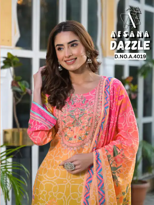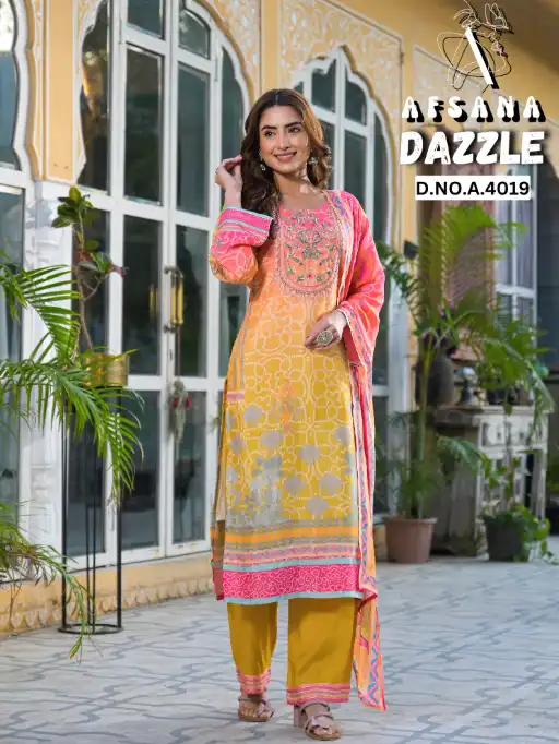 Afsana Dazzle DN 4019 Wholesale Elegance Readymade Salwar Suit Catalog.