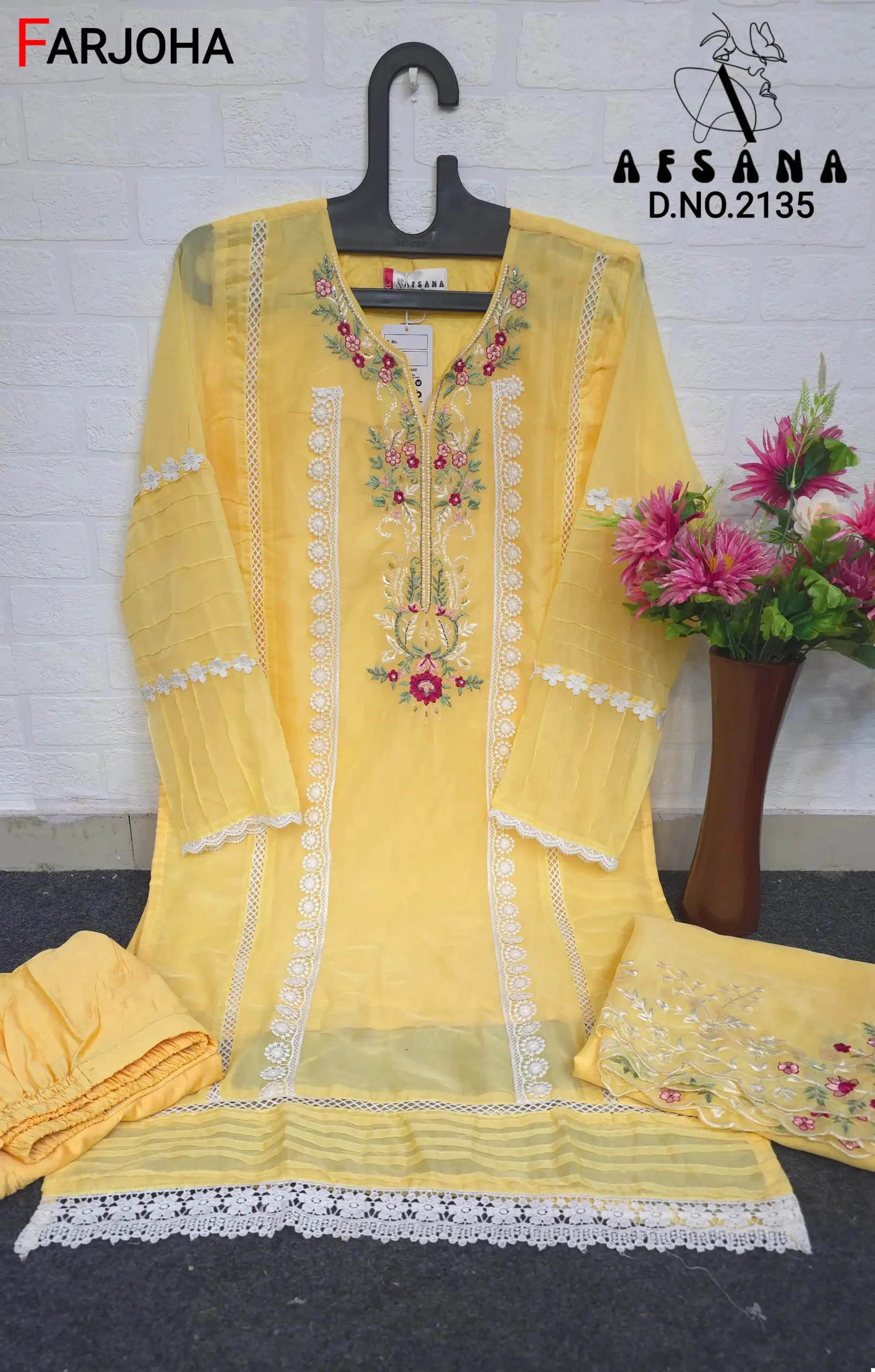 Afsana Farjoha Organza Wholesale Pakistani Readymade Salwar Suit Catalog