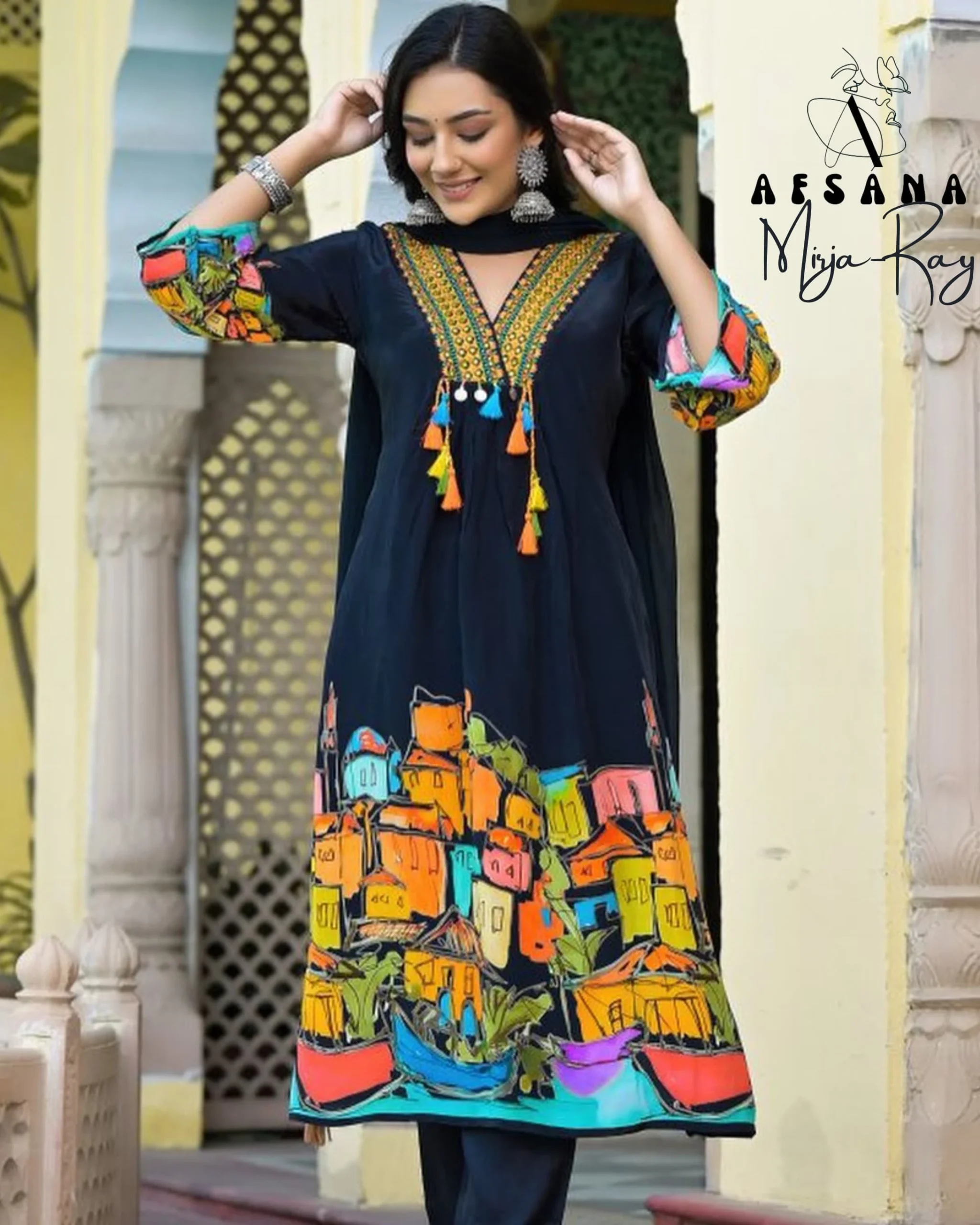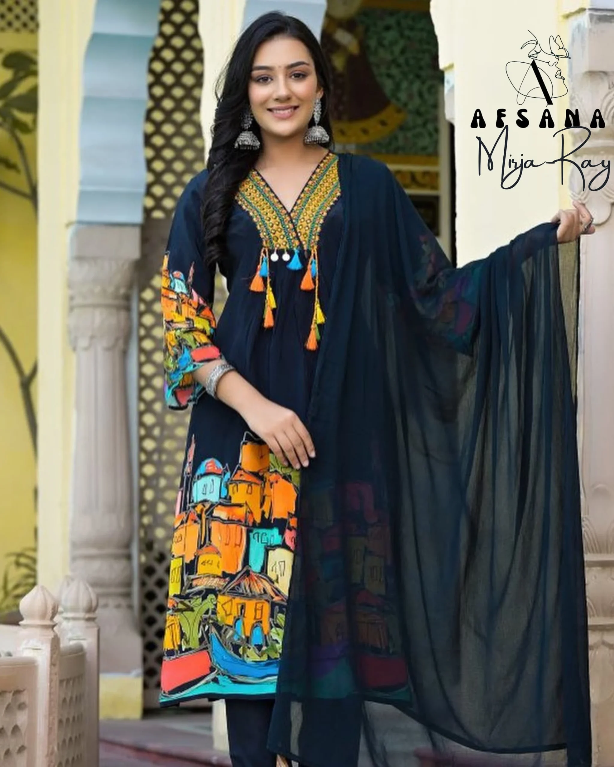 🧣 Dupatta: Rayon Digital Print to complete the ensemble with coordinated elegance.