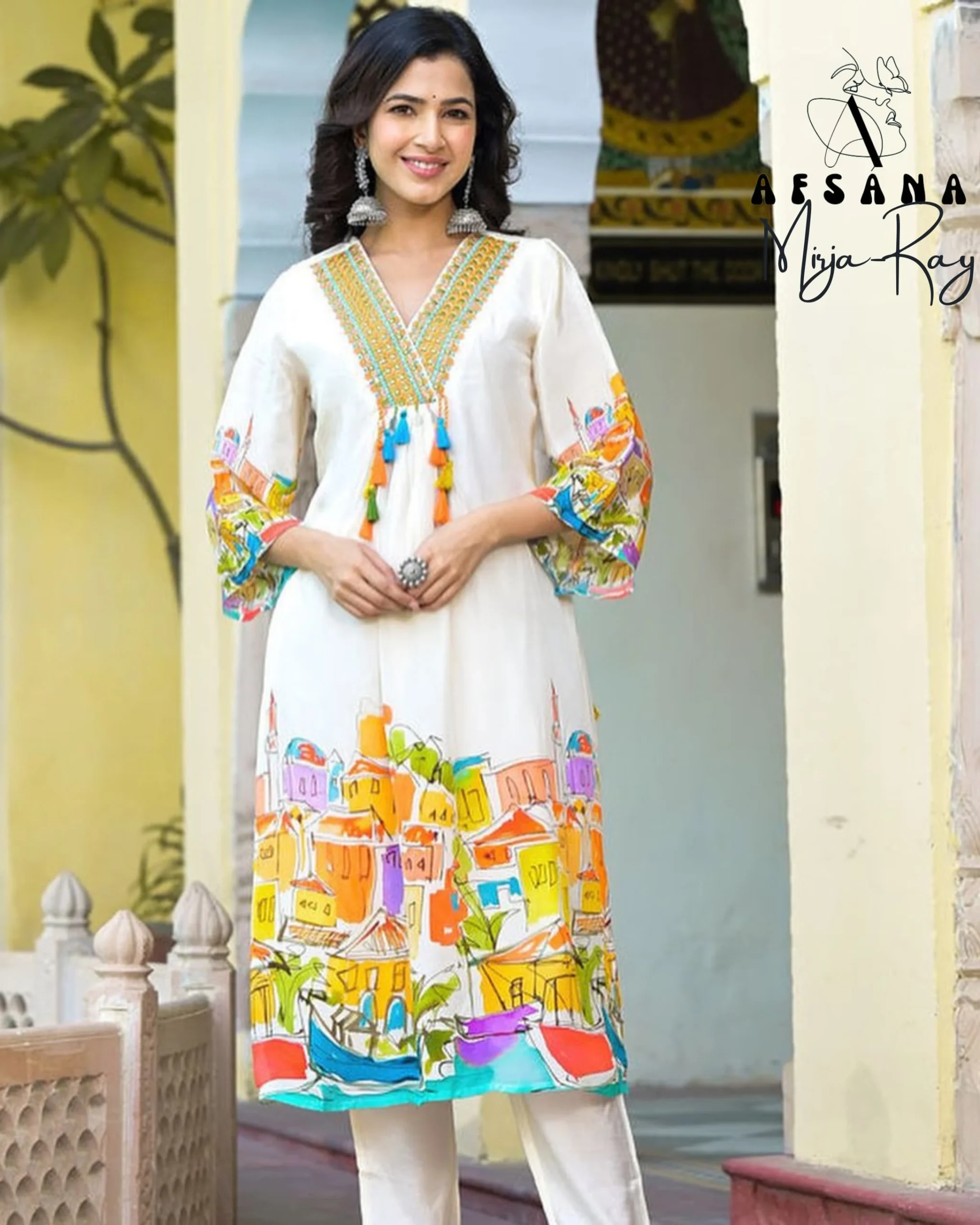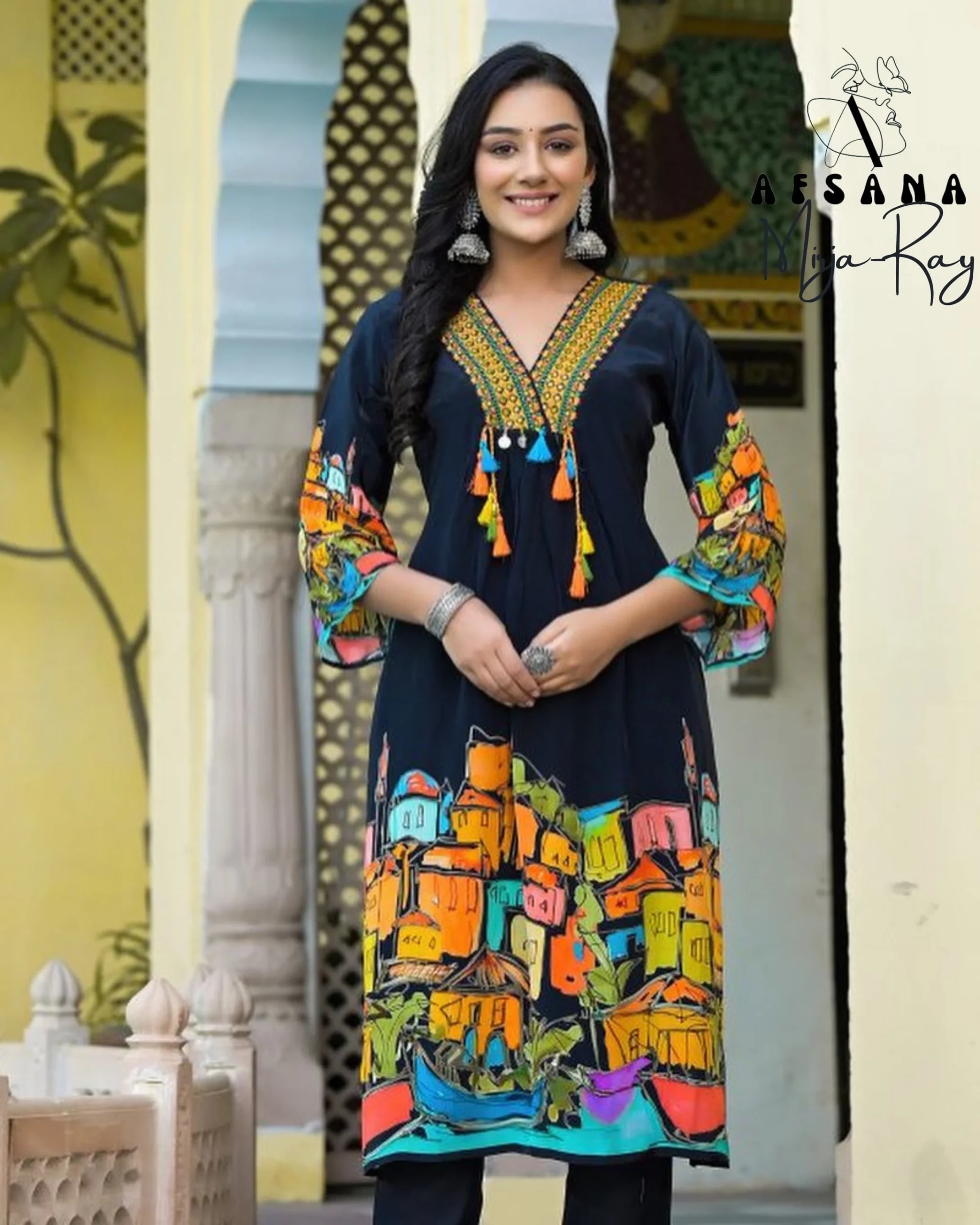 👖 Bottom: Matching Rayon Digital Print pants, offering comfort and style in every step.