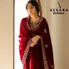 - Velvet Fabric: The salwar suits in the Suhana Velvet collection are crafted from plush velvet fabric, offering a rich and luxurious feel. Velvet is known for its soft texture, warmth, and ability to add a touch of opulence to any ensemble, making these suits perfect for winter occasions.