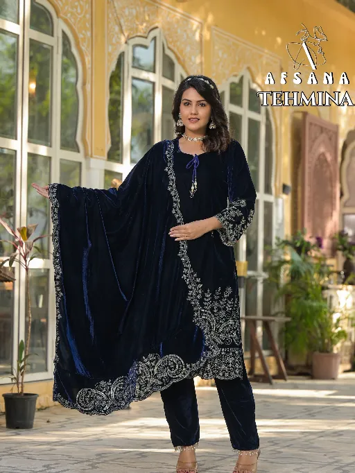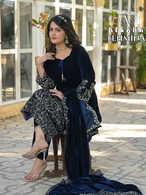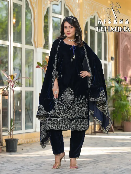 AFSANA TEHMINA Readymade Wholesale Velvet Combo Set Salwar Suit.