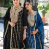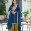 Upgrade your festive wardrobe with Zarooni’s elegant Divider Plazzo Suit Collection. Designed in premium Blooming Vichitra fabric, this exquisite 3-piece set is adorned with intricate embroidery, cord work, French zari cut work, and shimmering Siroksi stones. Perfect for grand celebrations and wedding festivities!