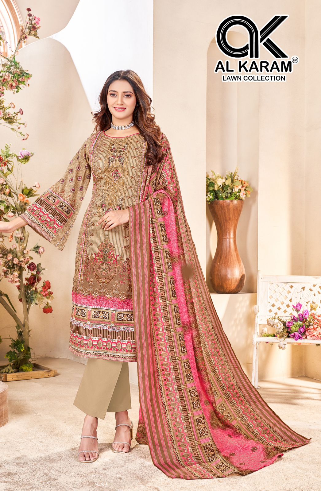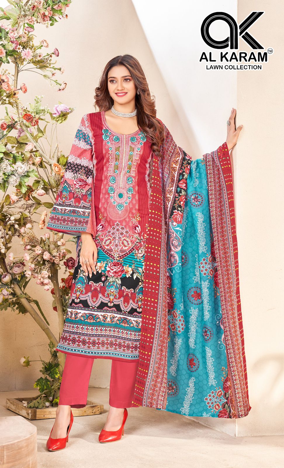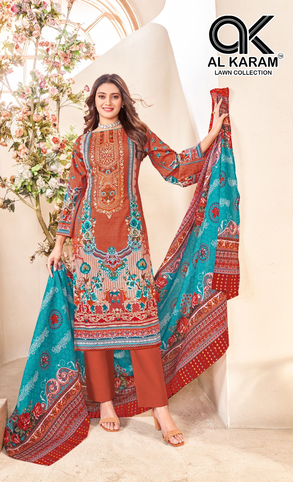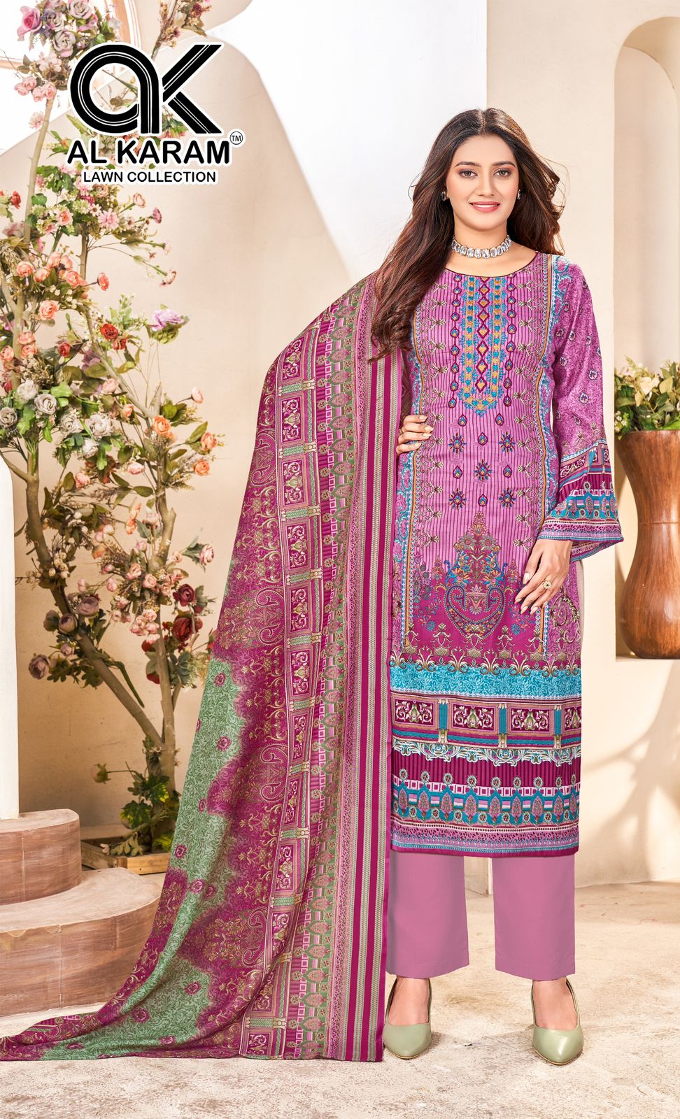 Presenting Alkaram Nisa Vol-01 – a premium collection of Karachi dress materials featuring pure lawn cotton with neck self-embroidery for the top. The bottom is made of pure cotton, while the dupatta is crafted from soft pure Mal Mal cotton. With 2.40 meters of fabric for the top, 2.25 meters for the bottom, and 2.25 meters for the dupatta, this set offers everything needed to create a refined and stylish ethnic look. Priced at ₹580/- per piece (₹3480/- for the full set), with GST included, the total price is ₹3654/-. Ready to ship within 4–5 working days.