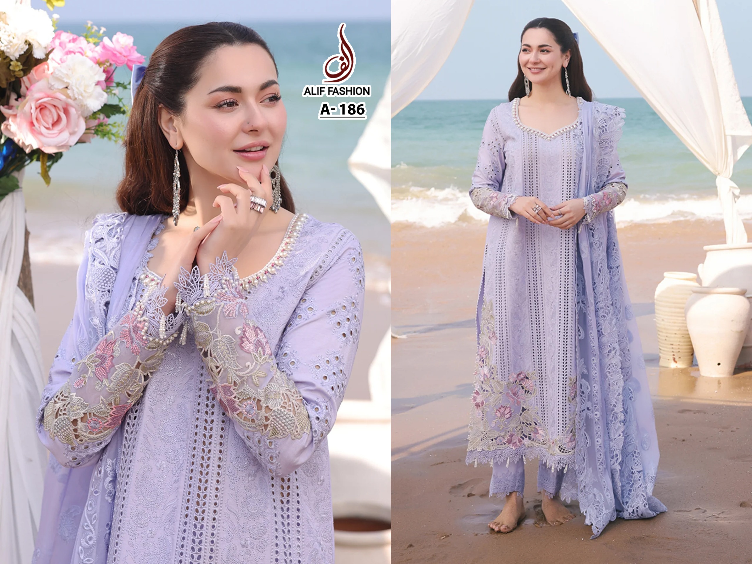 Buy Alif Fashion A186 premium cotton embroidered suit set at wholesale rate.