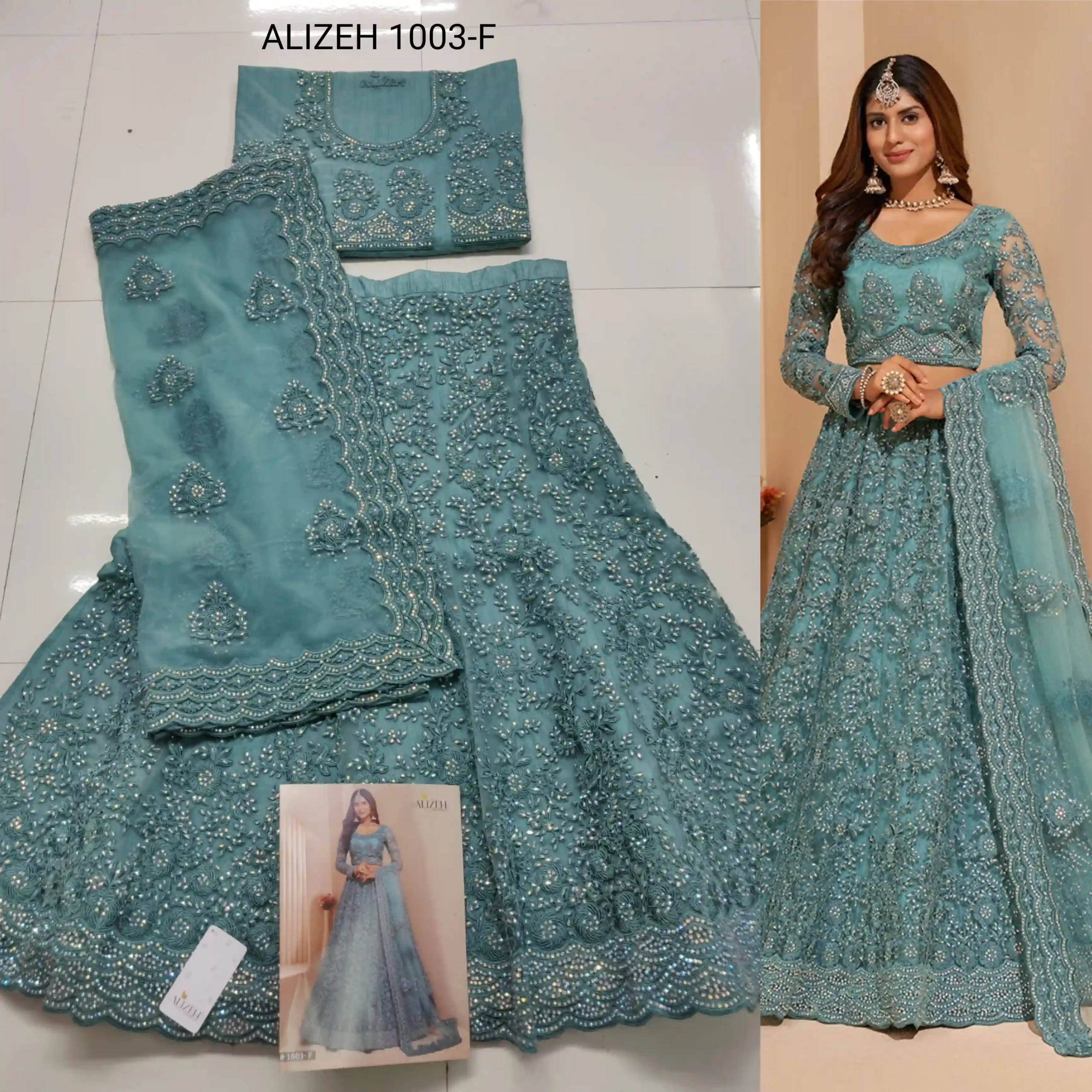Net Lehenga with Thread & Cording Work, Stone Handwork