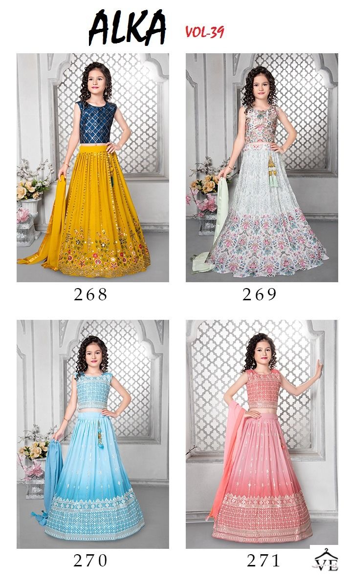 Alka Vol 39 Faux Georgette Wholesale Lehenga Catalog of 4 Pcs. We deal in Kurtis, Sarees, Dresses Materials, Leggings, and Designer Salwar Kameez.