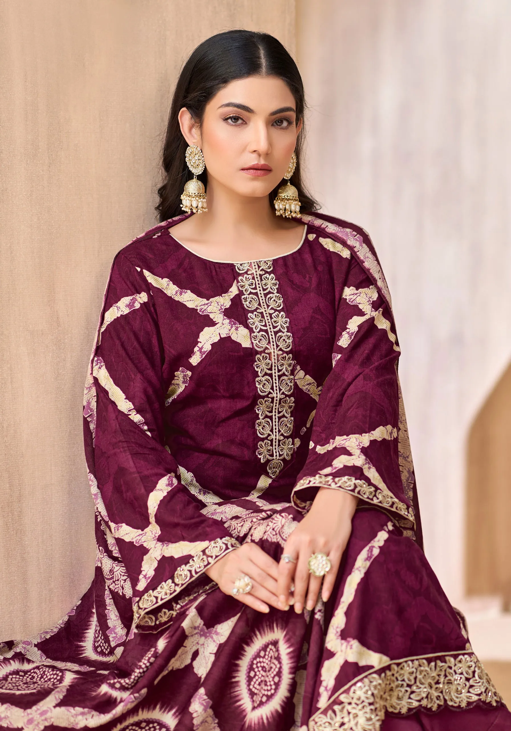 | Top | Pure Viscose Rayon Print with Foil and Fancy Embroidery Work |