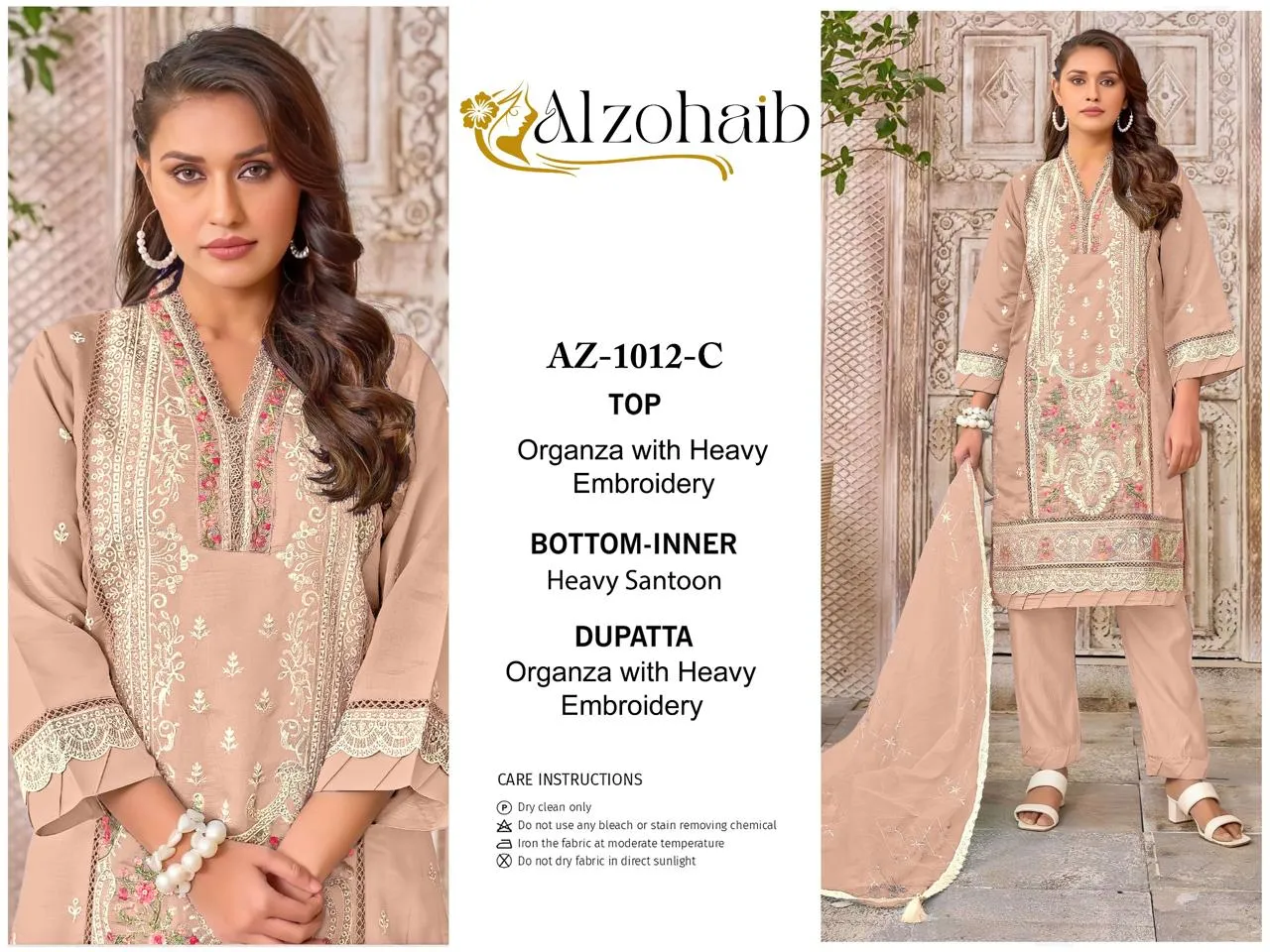 Alzohaib Az 1012 A To D Organza Wholesale Pakistani Suit Collection