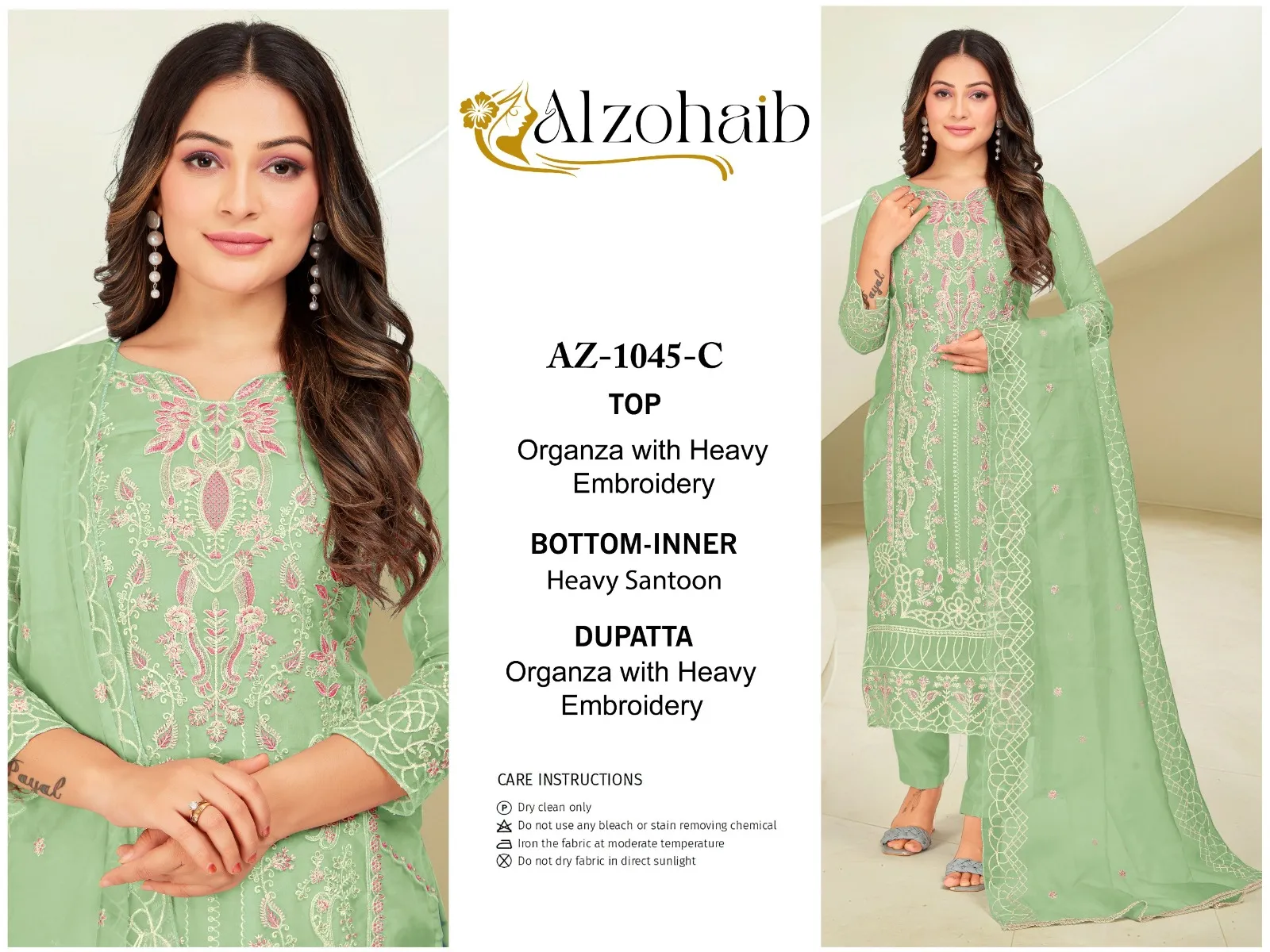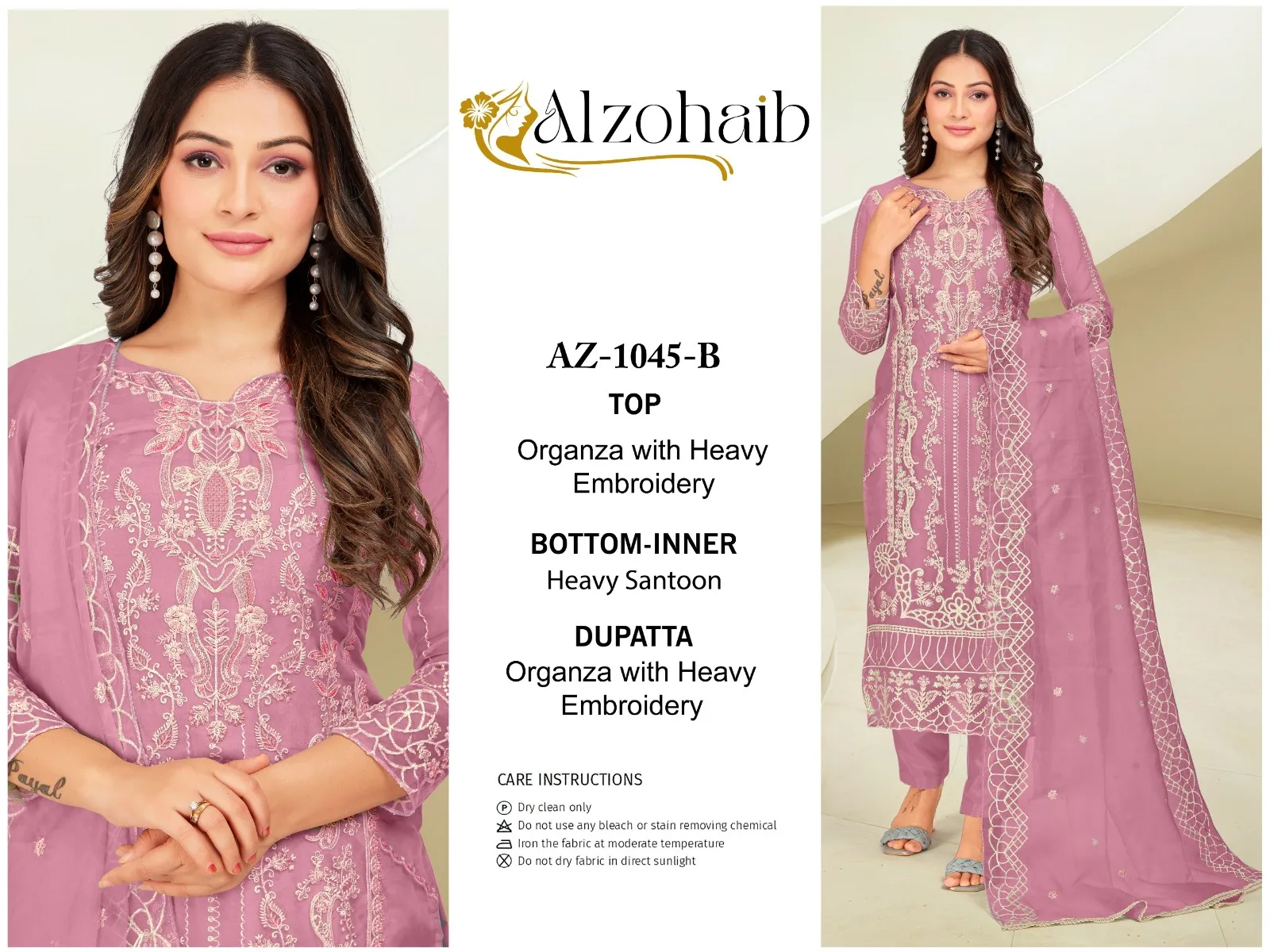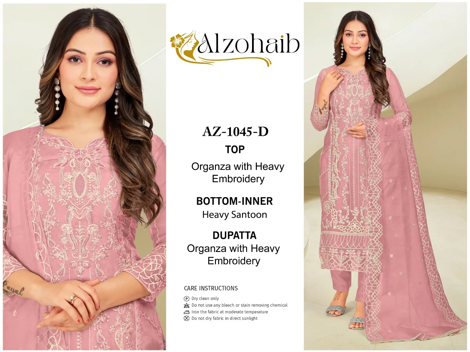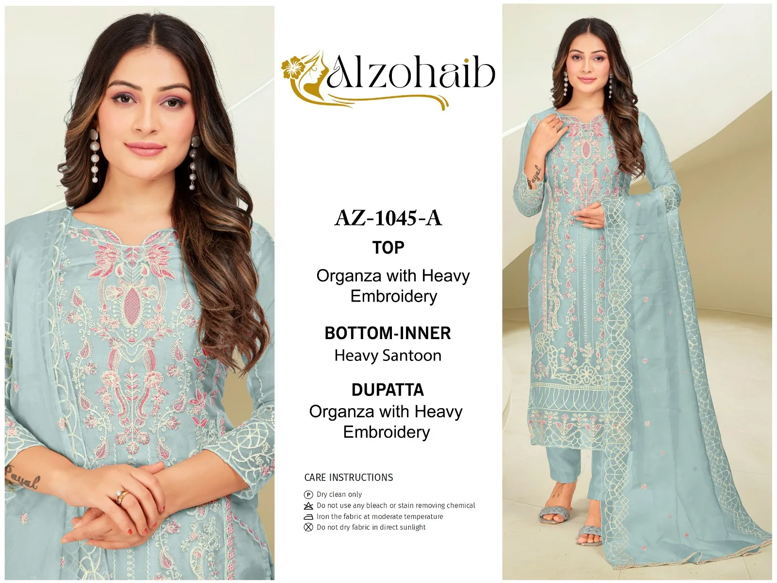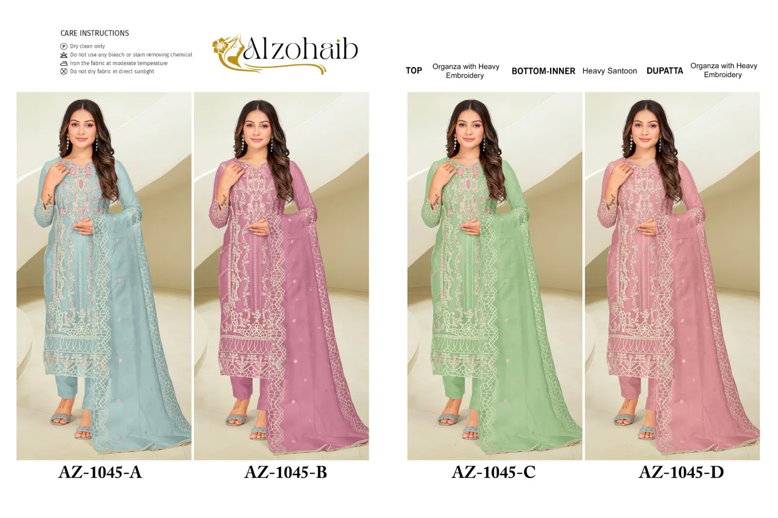 Alzohaib Az 1045 A To D Organza Wholesale Pakistani Salwar Suit Collection