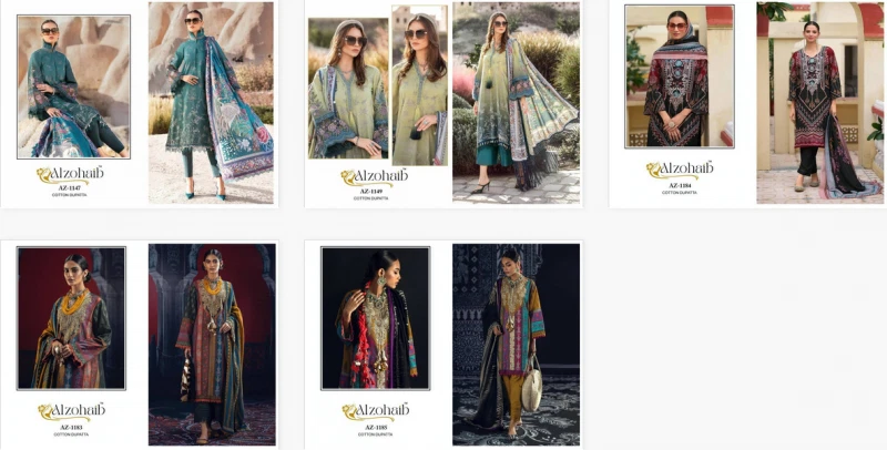 Alzohaib Az 1147 To 1185 Cotton Dupatta Wholesale Pakistani Suits Collection