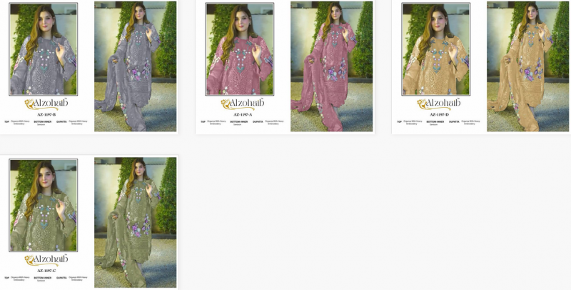 Buy Alzohaib Az 1197 A to D Pakistani suits catalog at wholesale rates.
