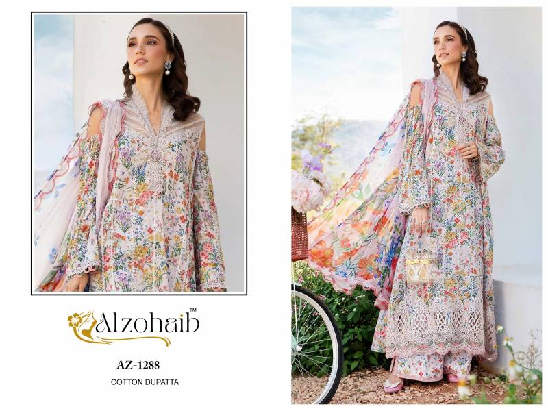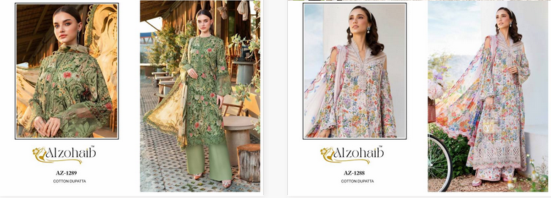 Buy Alzohaib Suits AZ 1288 & 1289 catalog with chiffon dupatta at wholesale rate.